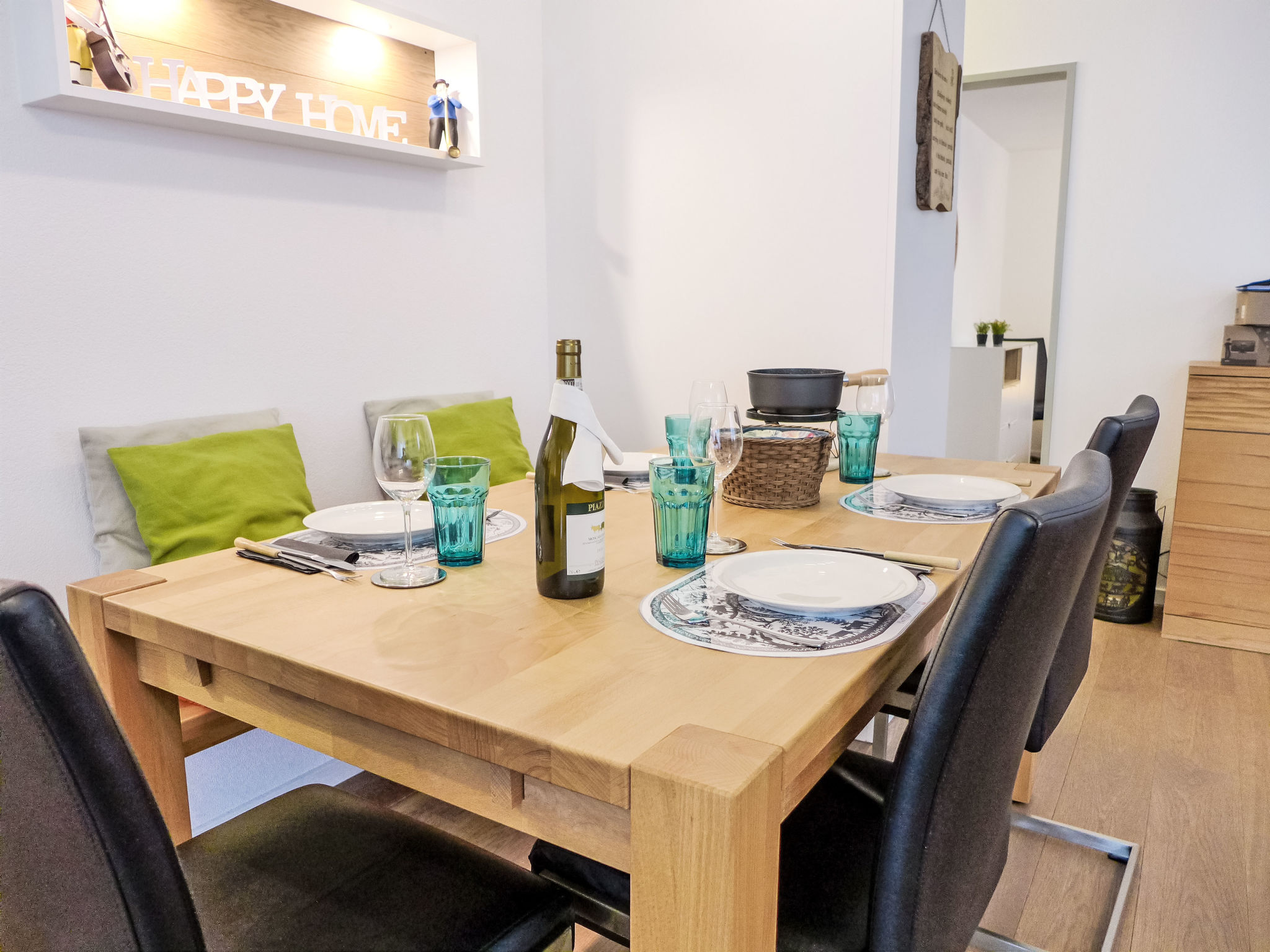 "Mountain Harmony", 3-Zimmer-Wohnung 60 m2 im 1. Stock, Südlage. Objekt geeignet für 3 Erwachsene + 2 Kinder. Hell, vollständig renoviert im Jahre 2022, sehr komfortabel und modern eingerichtet: offenes Wohn-/Esszimmer mit Panoramafenster mit Essecke und Digital-TV. Ausgang zum Balkon. 1 Zimmer mit 1 Doppelbett (2 x 90 cm, Länge 200 cm). 1 Kinderzimmer mit 1 Bett (90 cm, Länge 200 cm), 1 x 2 Etagenbetten (90 cm, Länge 200 cm). Offene Küche (Backofen, Geschirrspüler, 4 Induktionskochplatten, Toaster, Wasserkocher, Mikrowelle, elektrische Kaffeemaschine, Kapseln für die Kaffeemaschine (Nespresso) extra, Dampfgarer, Racletteofen, Fondue Set (Chinoise, Käse)). Dusche/WC. Parkettboden. Grosser Balkon, Südlage. Balkonmöbel. Herrliche Panoramasicht auf die Berge und die Landschaft. Zur Verfügung: Haartrockner. Internet (Wireless LAN, gratis). Parkplatz (1 Auto), Garage (1 Auto). Bitte beachten: Nichtraucher-Unterkunft.