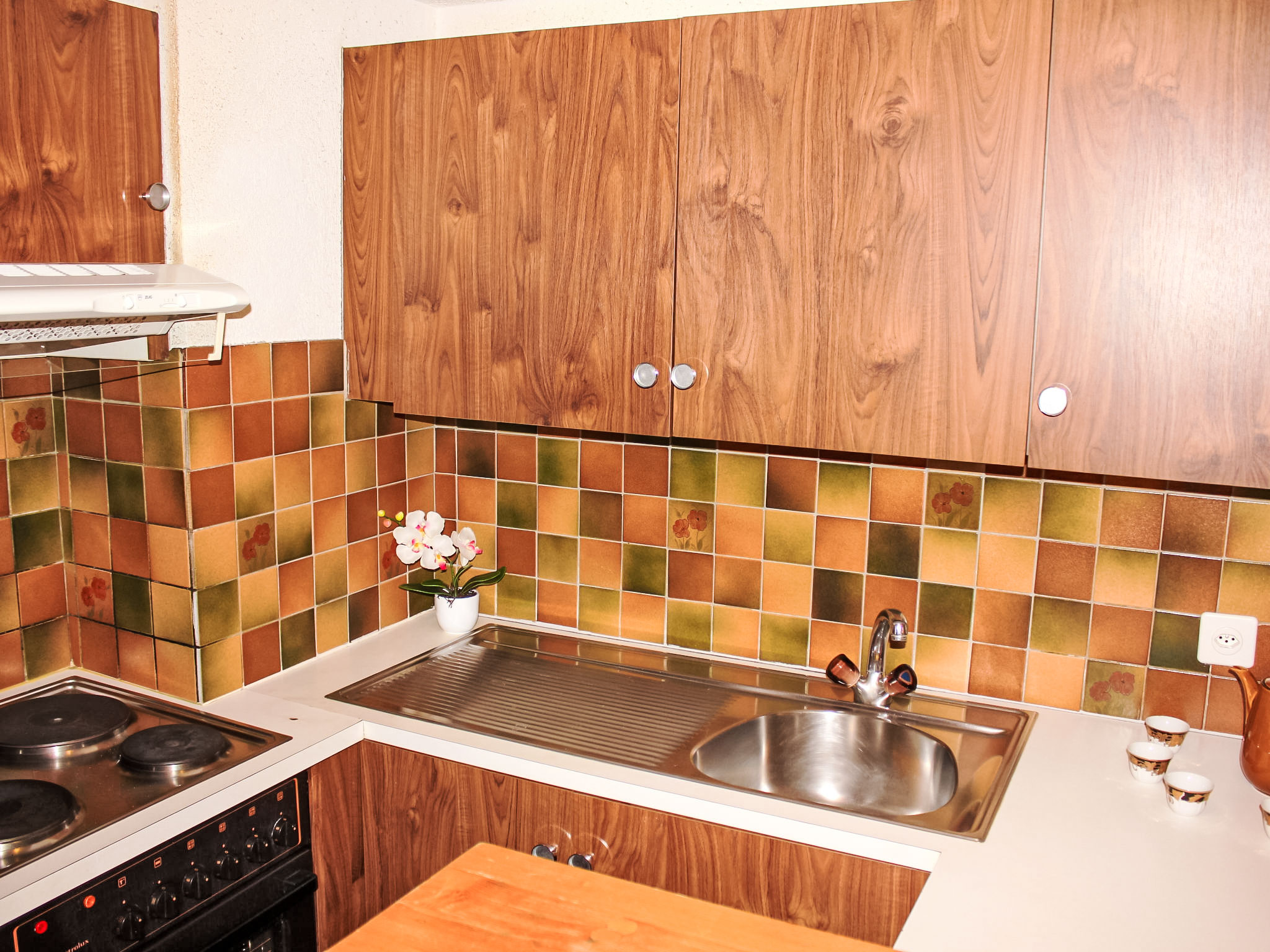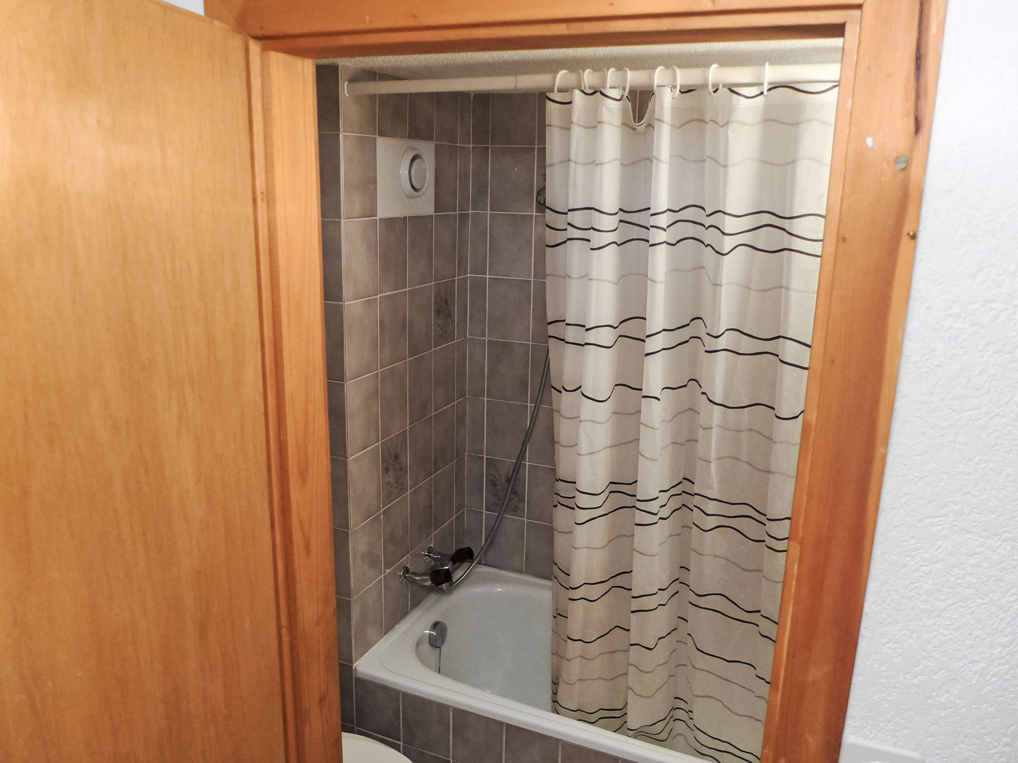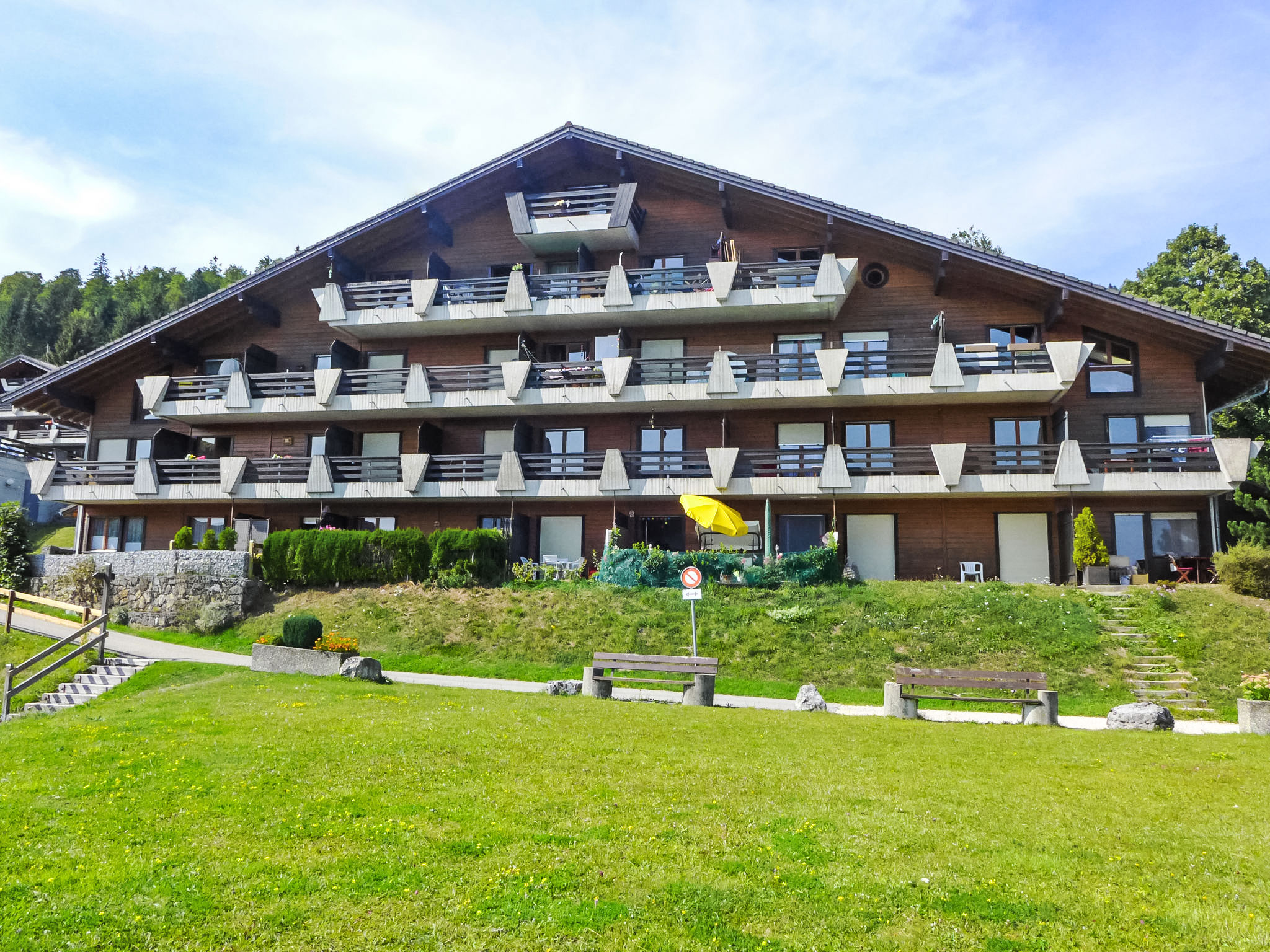 3-Zimmer-Wohnung 72 m2 auf 3 Stockwerken, im Erdgeschoss, Nordostlage. Einfach und zweckmässig eingerichtet: Wohn-/Esszimmer mit 1 Diwanbett, Schwedenofen, Esstisch, Kabel-TV und Heizofen. Ausgang zur Terrasse. Kochnische (4 Kochplatten, Backofen, Toaster, Wasserkocher, Fondue Set (Käse)). Heizung. Obergeschoss: 1 Zimmer mit 1 franz. Bett (140 cm, Länge 190 cm). Ausgang zum Balkon. Bad/WC. 2. Obergeschoss: 1 abgeschrägtes Zimmer mit 2 Betten. Dusche/WC. Balkon, Terrasse. Terrassenmöbel. Eingeschränkte Sicht auf die Berge und das Tal. Zur Verfügung: Internet (WLAN, gratis). Parkplatz (eingezäunt). Maximal 1 Haustier/Hund erlaubt.