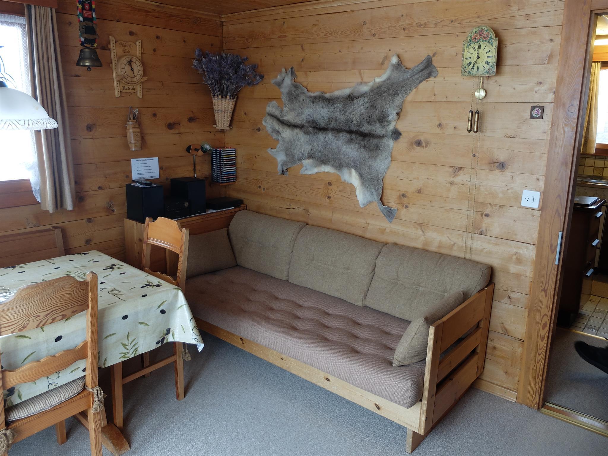 Heimeliges Einzelchalet in ruhiger Lage mit grossem Balkon und wunderbarer Aussicht in die Berge.