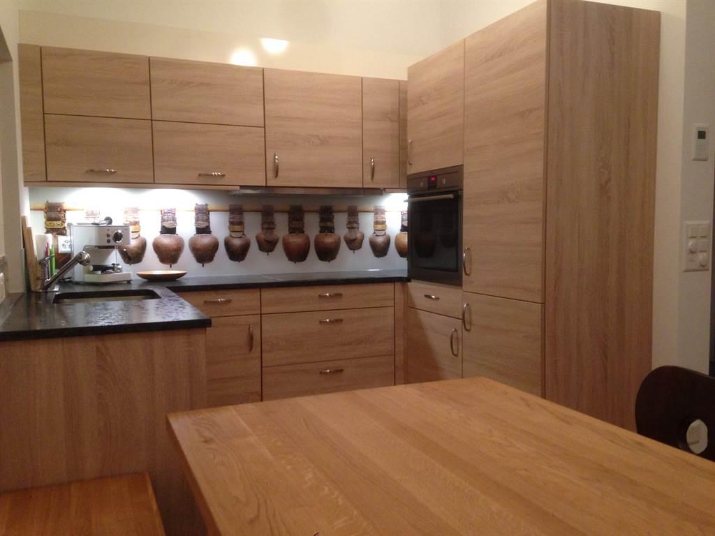 EG: Wohnbereich mit Sofa, Schwedenofen und Satelitenfernseher. Essbereich und offene Küche inkl. Geschirrspüler, Backofen, Kühl- und separatem Gefrierschrank. Schlafzimmer mit Doppelbett 160x200cm. Badezimmer mit Toilette und Dusche.