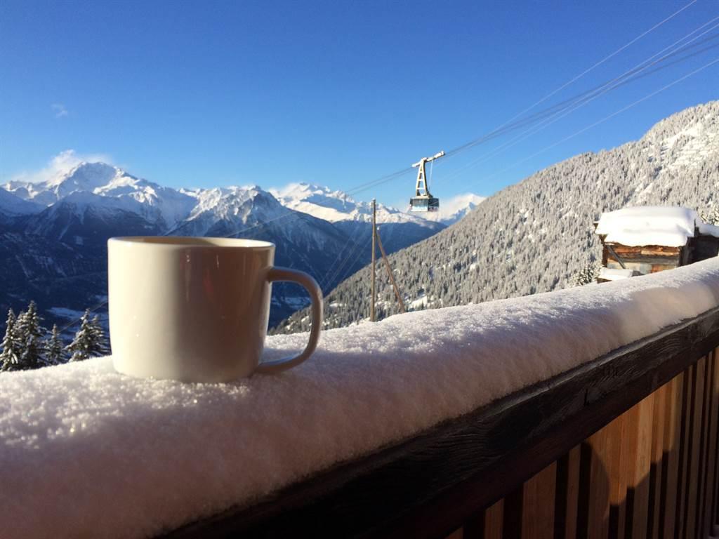 Auf der Rasen oder dem Balkon lässt sich tagsüber weiterträumen oder die Walliser Bergwelt bewundern. Im Winter endet die letzte Abfahrt mit den Skiern direkt vor dem Spycherli.