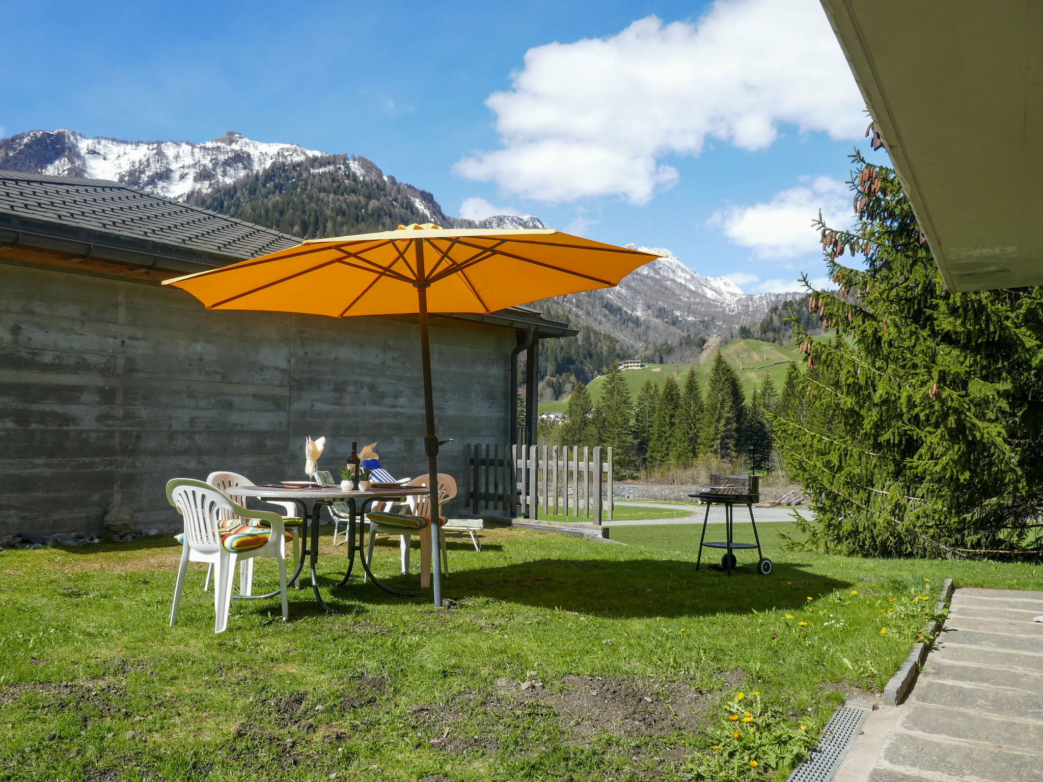 "Cà Bias", 2-Zimmer-Wohnung 35 m2, im Erdgeschoss. Objekt geeignet für 2 Erwachsene. Zweckmässig und komfortabel eingerichtet: offenes Wohn-/Esszimmer mit Sat-TV. 1 Doppelzimmer mit 1 Doppelbett (2 x 90 cm, Länge 200 cm). Offene Küche (Backofen, 4 Glaskeramikplatten, Toaster, Wasserkocher, Tiefkühler, elektrische Kaffeemaschine, Kapseln für die Kaffeemaschine (Nespresso) extra, Racletteofen, Fondue Set (Käse)). Dusche/WC. E-Heizung. Gartengrill (mobil), Liegestühle. Schöne Sicht auf die Berge, die Landschaft und den Fluss. Zur Verfügung: Kinderhochstuhl, Babybett bis 2 Jahre (extra), Haartrockner. Bitte beachten: Nichtraucher-Haus. Feuerlöscher. NL-00001868