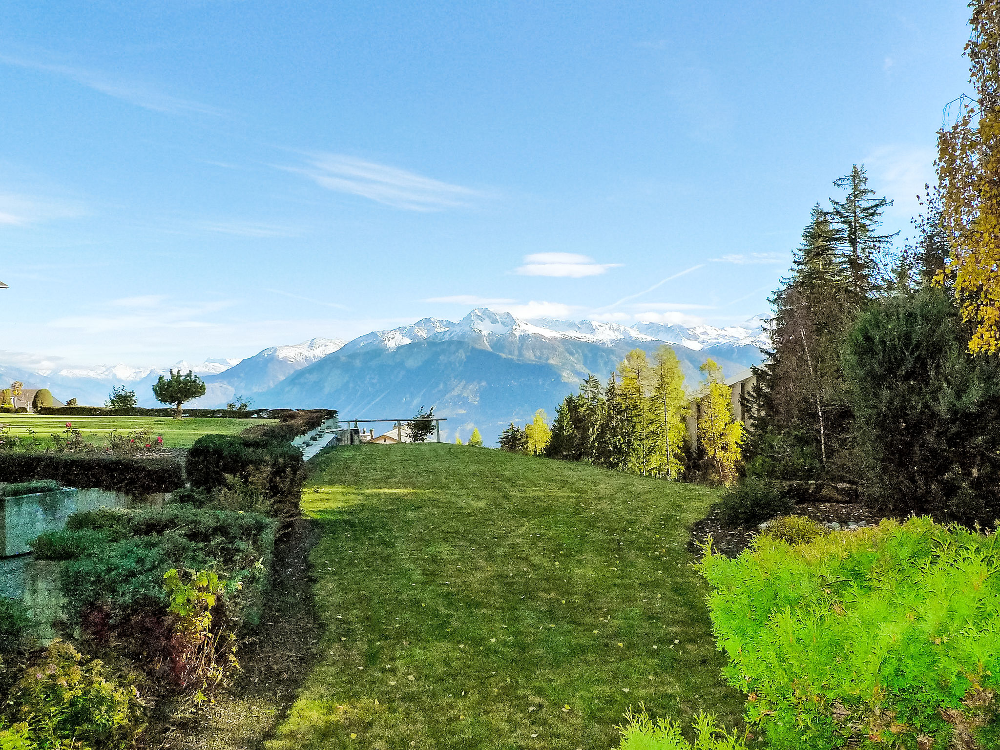 Schwimmbad (ca. 26°) und Sprudelbad (ab 16 Jahre alt) im November geschlossen. Das Gebäude wurde auf einem geneigten Grundstück erbaut. Die Stockwerke werden als Ebenen betrachtet, die ab Residenzboden nummeriert sind. Bei starkem Schneefall, ist es gemäss den Anweisungen des Administrators untersagt, die Terrassen vom Schnee zu räumen. Terrassenhaus "Terrasse des Alpes". Im Ortsteil Marigny, 400 m vom Zentrum von Montana, sonnige Lage, 1.5 km vom See, 1.5 km vom Skigebiet, Richtung Südwesten. Zur Mitbenutzung: Hallenbad beheizt (12 x 5 m, saisonale Verfügbarkeit: 01.Jan. - 31.Okt. und 16.Dez. - 31.Dez. Öffnungszeiten Schwimmbad: 08:00-20:00). Sprudelbad, Terrasse. Im Hause: Aufenthaltsraum, Fahrstuhl, Skiraum, Zentralheizung, Waschmaschine, Wäschetrockner (zur Mitbenutzung, extra). Einkaufsgeschäft, Supermarkt, Restaurant, Bar, Café 400 m, Zentrum zu Fuss in 5 Minuten erreichbar, Bushaltestelle "Montana Poste" 300 m, Bahnstation "Funiculaire Montana Gare" 450 m, Badesee "Moubra" 1.5 km. Golfplatz (18 Loch) 3.8 km, Skisportanlagen 1.5 km. Bitte beachten: Gratis Skibus.