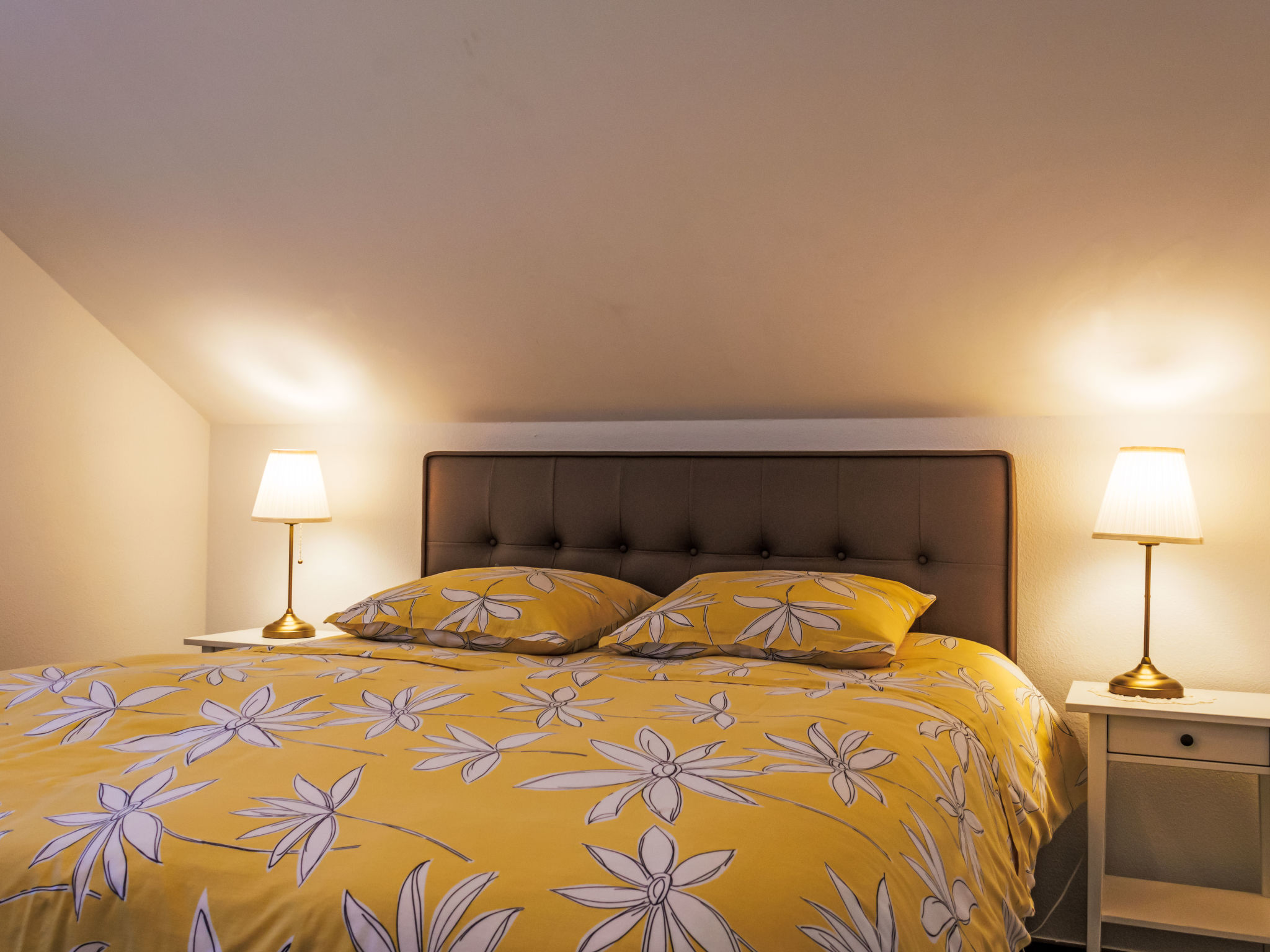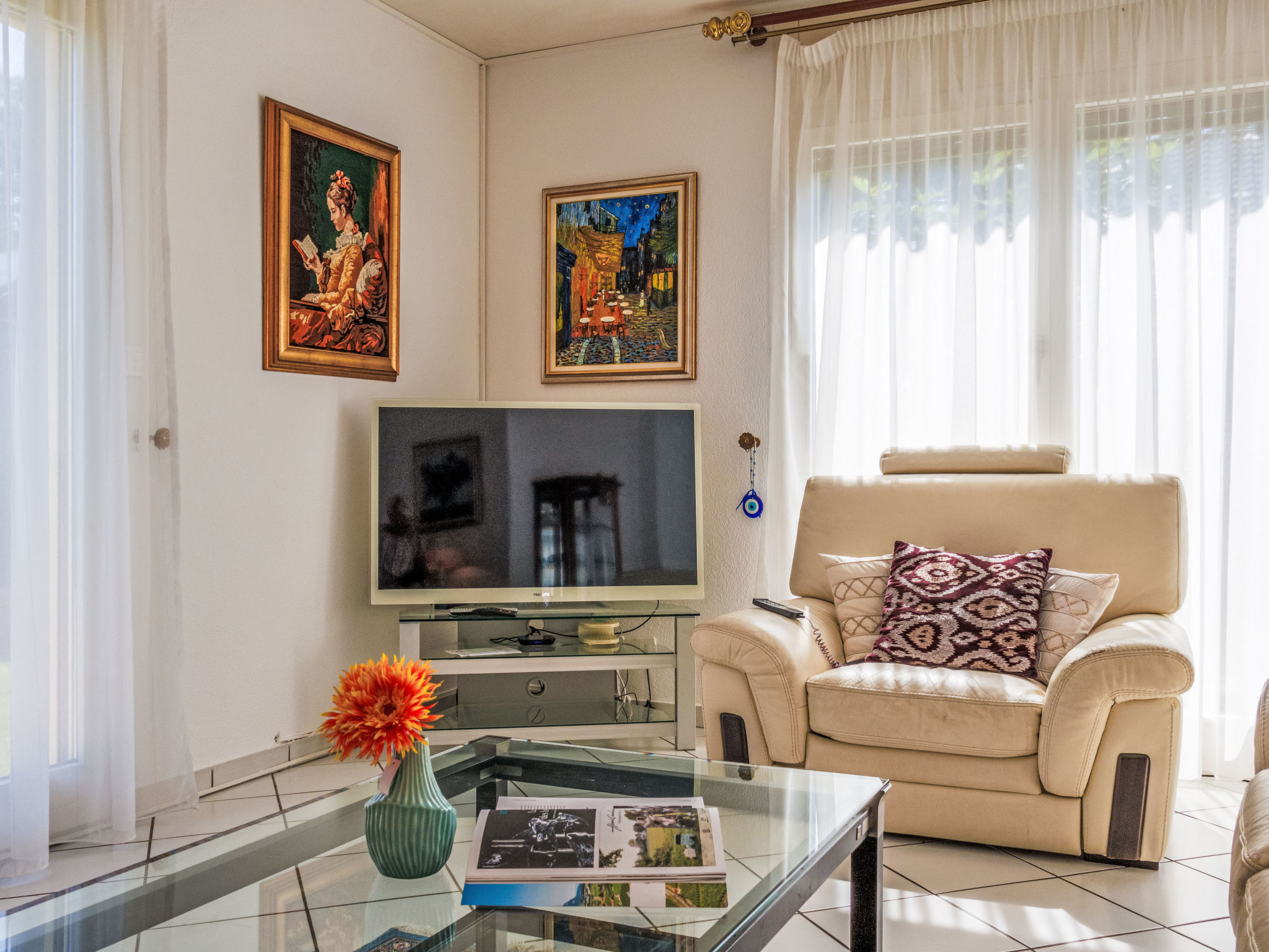 5-Zimmer-Villa 103 m2 auf 2 Stockwerken. Komfortabel und geschmackvoll eingerichtet: Wohn-/Esszimmer mit offenem Kamin und Kabel-TV. Ausgang zur Terrasse. Küche (Backofen, Geschirrspüler, 4 Glaskeramikplatten, Toaster, Wasserkocher, Mikrowelle, elektrische Kaffeemaschine, Kapseln für die Kaffeemaschine (Nespresso)). Ausgang zur Terrasse. Sep. WC. Obergeschoss: 1 Zimmer mit 1 Doppelbett (160 cm, Länge 200 cm), TV. 1 grosses Zimmer mit 1 Doppelbett (160 cm, Länge 200 cm), Bad/WC. 1 Zimmer mit 1 Doppelbett (160 cm, Länge 200 cm). Dusche/WC. Grosse Terrasse. Terrassenmöbel, Gartengrill (mobil), Liegestühle (2). Zur Verfügung: Internet (WLAN, gratis). Parkplatz (3 Autos) beim Haus. Bitte beachten: Nichtraucher-Unterkunft. Maximal 1 Haustier/Hund erlaubt.