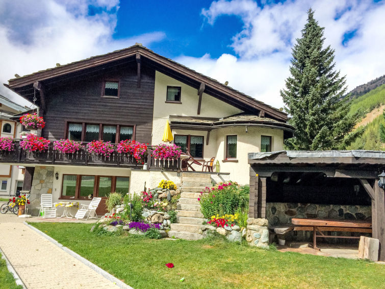 Schönes, gemütliches Appartementhaus "Chalet Sunstar", 1'550 m.ü.M., auf 3 Stockwerken, Baujahr 1985, renoviert im Jahre 2017, umgeben von Bäumen, Wiesen und Feldern. Im Ortsteil Unter den Bodmen, am Ortsrand, 2 km vom Zentrum von Saas-Grund, ruhige, sonnige Lage in einem Wohnquartier, 2 km vom Skigebiet. Zur Mitbenutzung: Garten, Liegewiese. Grill, Kinderspielplatz. Im Hause: Einstellraum für Fahrräder, Skiraum, Zentralheizung, Waschmaschine, Wäschetrockner (zur Mitbenutzung, extra), Skischuhtrockner. Zufahrt bis zum Haus. Im Winter bitte Schneeketten mitbringen, im Winter 4x4 empfohlen. Parkplatz beim Haus. Einkaufsgeschäft 2 km, Lebensmittelgeschäft 2 km, Restaurant, Bushaltestelle 300 m, Hallenbad 4 km. Golfplatz (9 Loch) 4 km, Tennis 2 km, Gondelbahn 2 km, Skisportanlagen 2 km, Skipisten 2 km, Skiverleih 2 km, Skibushaltestelle 300 m, Skischule 2 km, Schlittelbahn 2 km, Langlaufloipe 300 m, Eisfeld 2 km, Kinderspielplatz 300 m. Bekannte Skigebiete sind gut erreichbar: Hohsaas 2 km, Saas Fee 5 km, Saas Almagell 4 km.