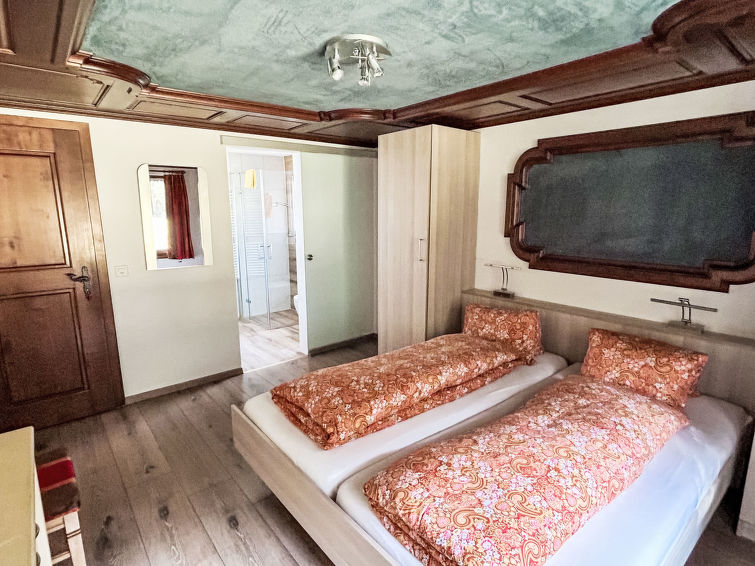"Chalet Sunstar Gross", 6-Zimmer-Wohnung 140 m2 auf 2 Stockwerken im 1. Stock. Komfortabel und gemütlich eingerichtet: Wohnzimmer mit Sat-TV (Flachbildschirm), Stereoanlage. Esszimmer. Ausgang zum Balkon. 2 Zimmer, jedes Zimmer mit 2 Betten. Offene Küche (Backofen, Geschirrspüler, 4 Glaskeramikplatten, Toaster, Wasserkocher, Mikrowelle, Tiefkühler, elektrische Kaffeemaschine, Racletteofen, Fondue Set (Käse)). Obergeschoss: 2 abgeschrägte Zimmer, jedes Zimmer mit 2 Betten. 2 Duschen/WC. Balkon, Terrasse, Südlage, Gartensitzplatz. Terrassenmöbel, Liegestühle (6). Schöne Sicht auf die Berge und die Landschaft. Zur Verfügung: Kinderhochstuhl, Babybett, Haartrockner. Internet (WLAN, gratis). Parkplatz (2 Autos) beim Haus. Bitte beachten: geeignet für Familien. Nichtraucher-Unterkunft. Maximal 1 Haustier/Hund erlaubt.