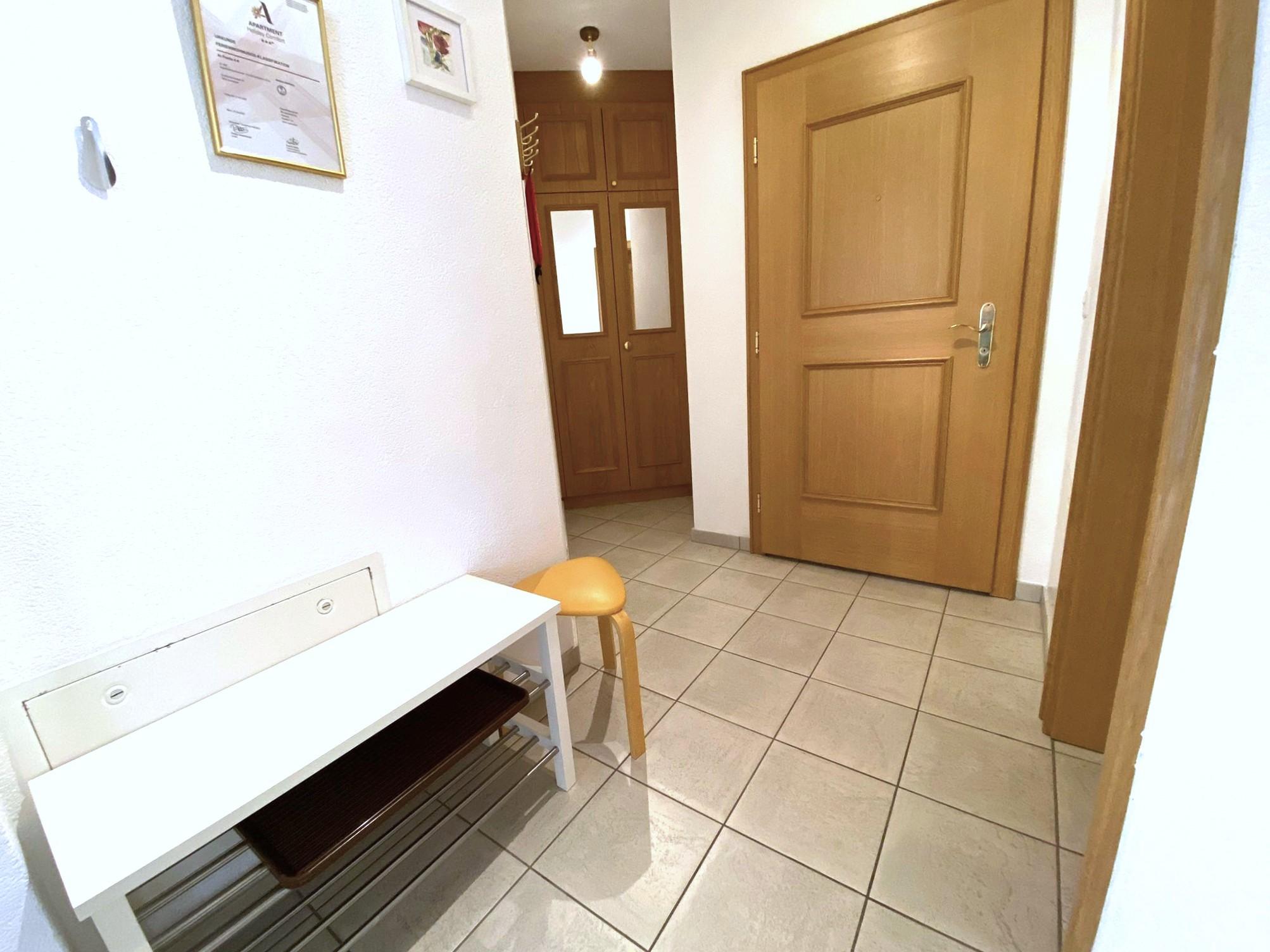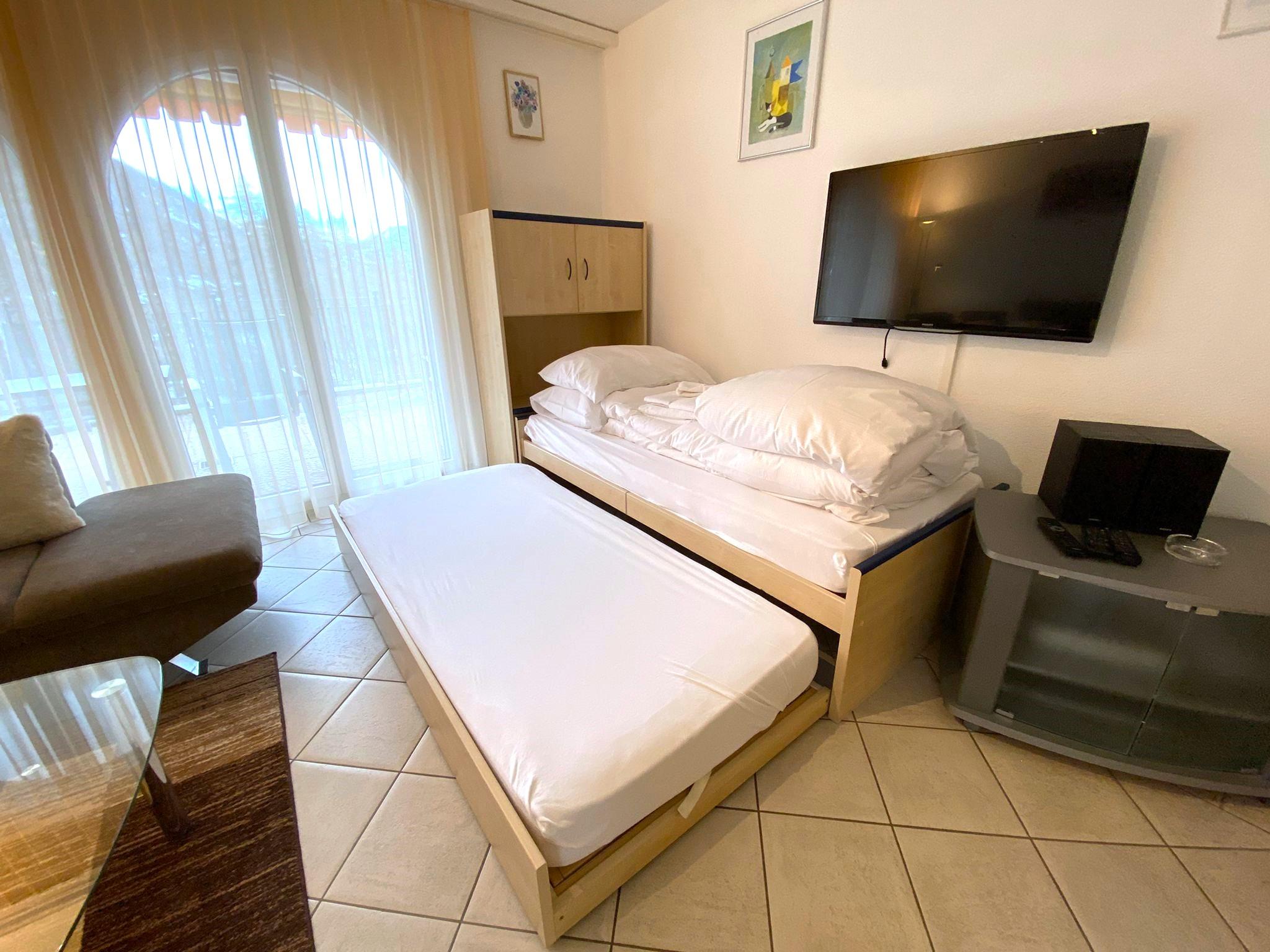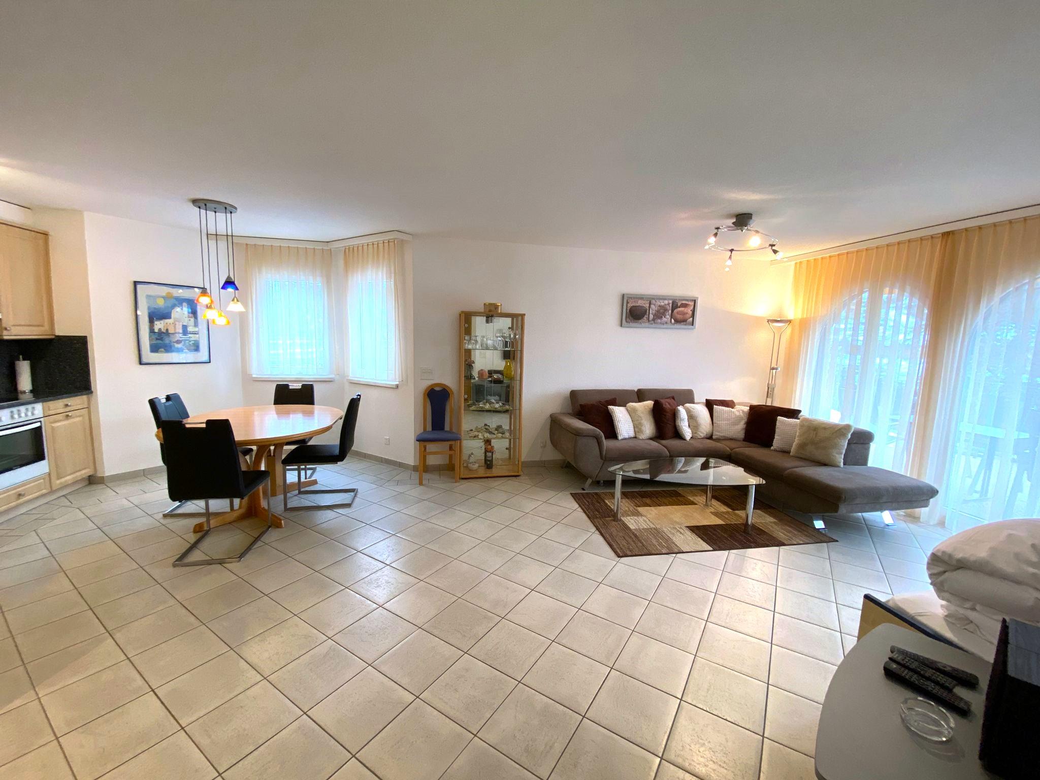 2-Zimmer-Eckwohnung mit grosser Südterrasse: Moderne, offene Küche mit Mikrowelle & Geschirrspüler, 1 Doppelschlafzimmer, Dusche/WC/Doppellavabo, Wohnraum mit 2 Einzelbetten, gratis WiFi, TV, DVD-Player, Radio, CD-Player. Gartenmöbel vorhanden. Garage im Haus inklusive. Nichtraucherwohnung! Haustiere nicht erlaubt!