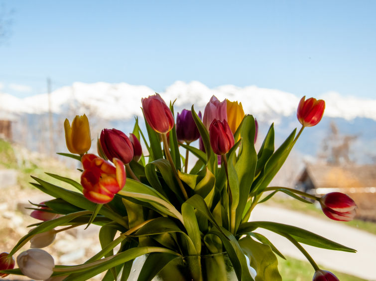 Schönes Chalet "Papillon", auf 2 Stockwerken, Baujahr 2017. Im Weiler Sarclentse, am Ortsrand, 4 km vom Zentrum von Haute-Nendaz, ruhige Lage. Zur Alleinbenutzung: Naturgarten. Terrasse, Gartenmöbel. Im Hause: Sauna, Waschmaschine, Wäschetrockner. Im Winter bitte Schneeketten mitbringen, im Winter 4x4 empfohlen. Treppenweg (29 Stufen) bis zum Haus. Öffentliche Parkplätze auf der Strasse. Einkaufsgeschäft 4 km, Supermarkt 4 km, Restaurant 3 km, Bushaltestelle "Basse-Nendaz, Saclentz" 1.1 km, Bahnstation "Sion" 13.7 km. Wanderwege ab Haus 200 m. Bekannte Skigebiete sind gut erreichbar: Nendaz tracouet 4 km, Siviez 4 Vallées 6.5 km. Wandergebiete: Les Bisses d'en bas Nendaz 600 m. Bitte beachten: Fahrzeug empfohlen.