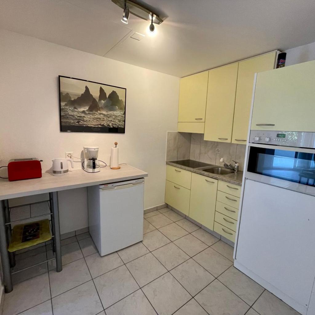 Diese Ferienwohnung hat 1 Schlafzimmer, einen Flachbild-TV mit Kabelkanälen, eine gut ausgestattete Küche mit einem Kühlschrank und einem Ofen sowie 1 Badezimmer mit einer Dusche.