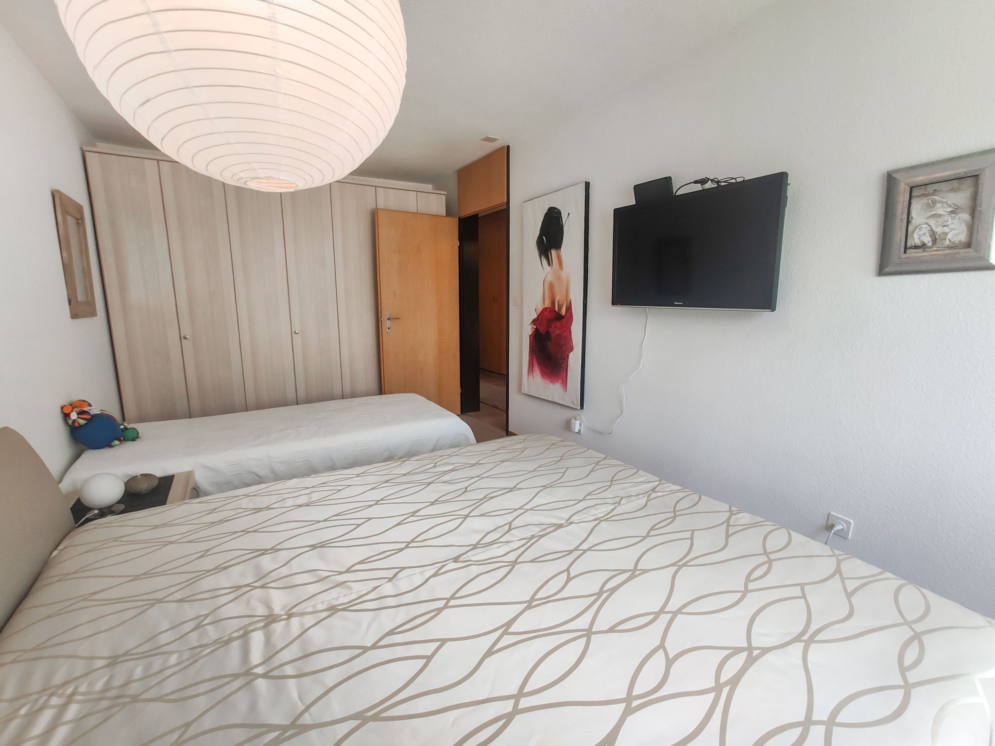 "Allod Park Haus C 207", 3-Zimmer-Wohnung im 2. Stock, Nordwestlage. Geräumig und hell, renoviert, modern und geschmackvoll eingerichtet: Wohn-/Esszimmer mit Kabel-TV und Flachbildschirm. Ausgang zum Balkon, Richtung Westen. Gross, 1 Doppelzimmer mit 1 franz. Bett (2 x 90 cm, Länge 200 cm), Kabel-TV und Flachbildschirm. 1 Kinderzimmer mit 1 Diwanbett (90 cm, Länge 200 cm), 1 Doppelbett (2 x 90 cm, Länge 200 cm), Kabel-TV und Flachbildschirm. Grosse Küche (Backofen, Geschirrspüler, 4 Glaskeramikplatten, Wasserkocher, Mikrowelle, elektrische Kaffeemaschine, Kapseln für die Kaffeemaschine (Nespresso) extra, Fondue Set (Käse)). Dusche/WC, Doppelwaschbecken. Holzdielenboden. Balkonmöbel. Seitliche Sicht auf die Berge und die Stadt. Zur Verfügung: Internet (WLAN, gratis). Parkplatz (extra) beim Haus. Bitte beachten: Wohnung auf Strassenseite. Nichtraucher-Unterkunft. 14944