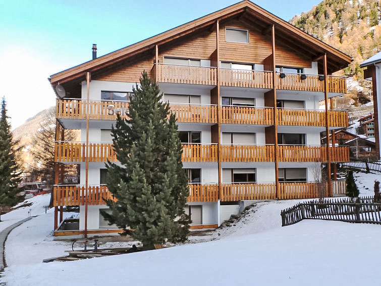Einfaches Mehrfamilienhaus "Select", auf 4 Stockwerken. Im Ortsteil Winkelmatten, 1.1 km vom Zentrum von Zermatt, ruhige, sonnige Lage, Richtung Süden. Im Hause: Fahrstuhl, Skiraum, Zentralheizung. Treppenweg (98 Stufen) bis zum Haus. Lebensmittelgeschäft 500 m, Supermarkt 900 m, Restaurant 400 m, Bäckerei 500 m, Zentrum zu Fuss in 15 Minuten erreichbar, Bushaltestelle "Luchre" 100 m, Bahnstation "Bahnhof Zermatt" 1.1 km. Bergeisenbahn 650 m, Skiverleih 650 m, Skibushaltestelle 100 m, Skischule, Kinderskischule 850 m. Taxi kann nicht bis zum Haus fahren. Die Schlüsselübergabe findet bei der Agentur Interhome in Zermatt statt.