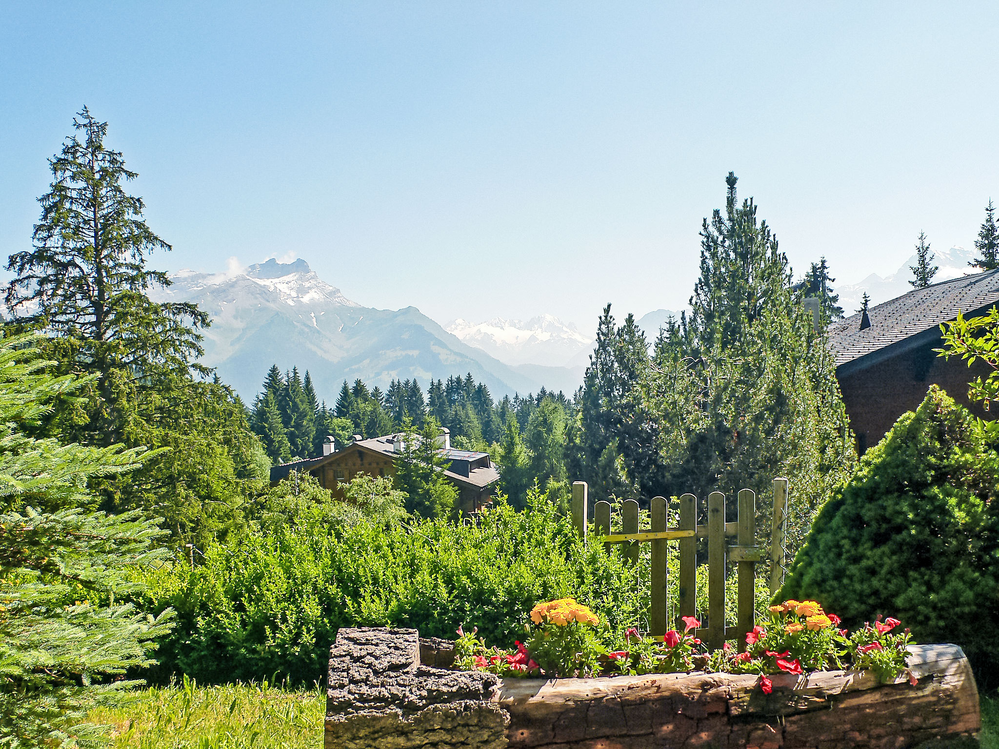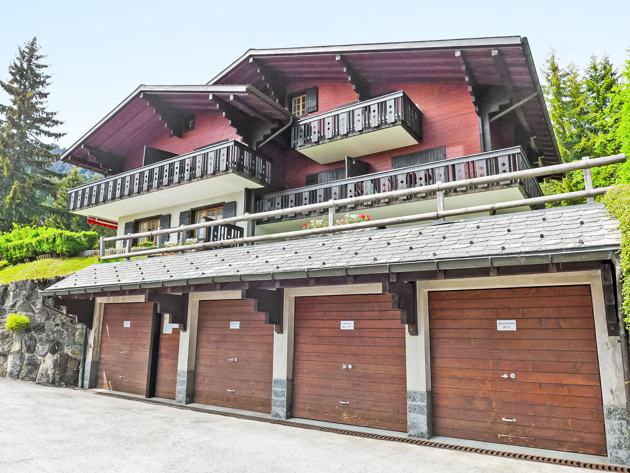 "Armorial II / apt 2", 3-Zimmer-Wohnung 71 m2, im Erdgeschoss. Teilweise renoviert im Jahre 2017, komfortabel und schön eingerichtet: Wohn-/Esszimmer mit offenem Kamin, Sat-TV, Radio und DVD. Ausgang zum Garten, zur Terrasse. 1 Zimmer mit 2 Betten und Bad/WC. 1 Zimmer mit 1 franz. Bett und offenem Kamin (nur Deko), Dusche/WC. Ausgang zum Garten, zur Terrasse. Offene Küche (Backofen, Geschirrspüler, 4 Glaskeramikplatten, Tiefkühler, Racletteofen, Fondue Set (Käse)). Grosser Garten 100 m2, Südlage und Westlage. Terrassenmöbel. Sehr schöne Sicht auf die Berge. Zur Verfügung: Internet (Wireless LAN, gratis). Garage Nr. Apt 2. Bitte beachten: Nichtraucher-Unterkunft.