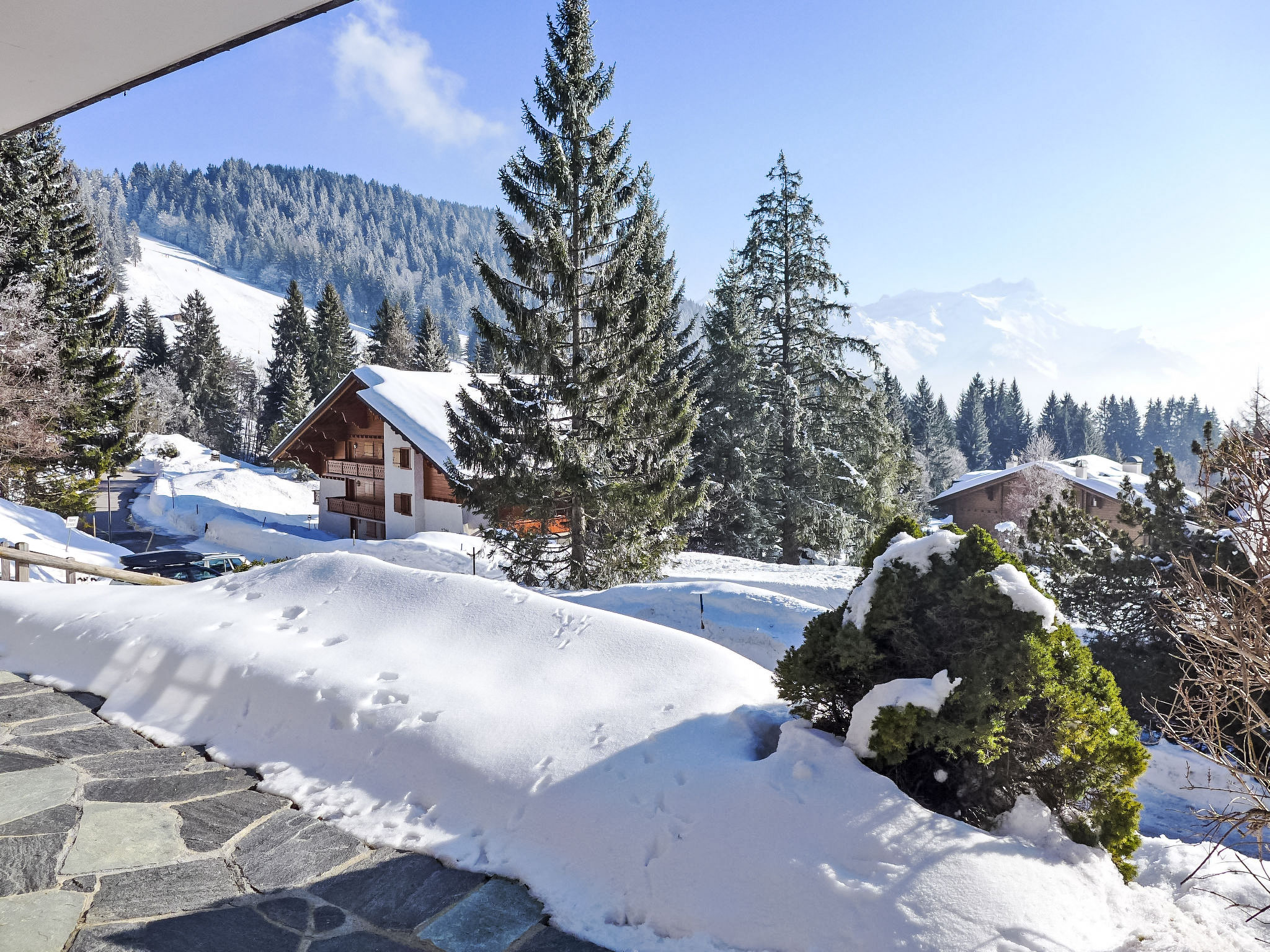 Villars: Gemütliches Chalet "Armorial II". Im Ortsteil La Residence, 1.8 km vom Zentrum von Villars, ruhige, sonnige Lage, 200 m vom Skigebiet, Richtung Süden. Im Hause: Zentralheizung, Waschmaschine (extra), Wäschetrockner (zur Mitbenutzung). Wohnungsreinigung 1 mal wöchentlich möglich (extra). Im Winter bitte Schneeketten mitbringen. Einkaufsgeschäft 3.1 km, Lebensmittelgeschäft 1.8 km, Restaurant 3 km, Bushaltestelle 2.4 km, Bahnstation "Villars" 3.4 km, Hallenbad 2.8 km, Thermalbad "Lavey-les-bains" 19 km. Sporthafen 25 km, Golfplatz (18 Loch) 8 km, Tennishalle 3.5 km, Sportzentrum 3.5 km, Bergeisenbahn 3.4 km, Skilift 3 km, Gondelbahn 1.9 km, Skibushaltestelle 1.9 km, Skischule 3.2 km, Kinderskischule 3.5 km, Eisfeld 2.9 km, Kinderspielplatz 3.6 km. Bitte beachten: Fahrzeug empfohlen, kein Fahrstuhl vorhanden. Der gratis Skibus fährt zum Skigebiet Villars.