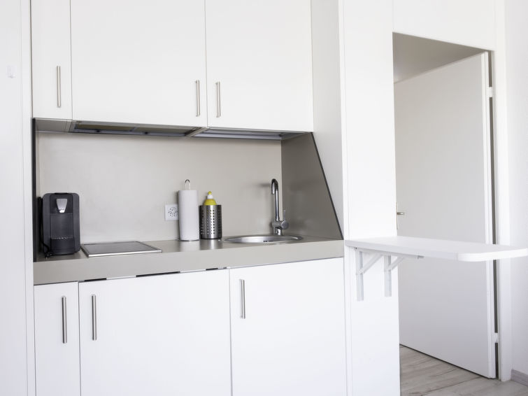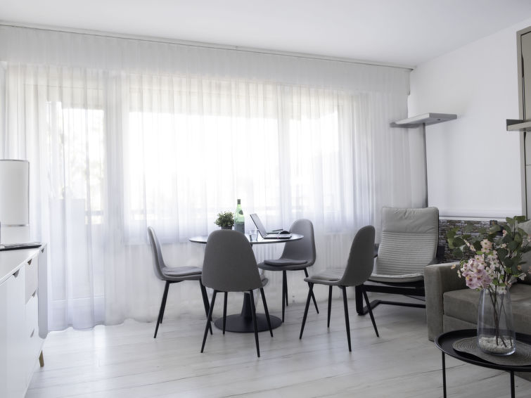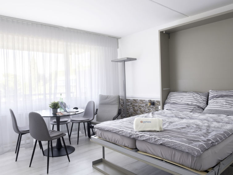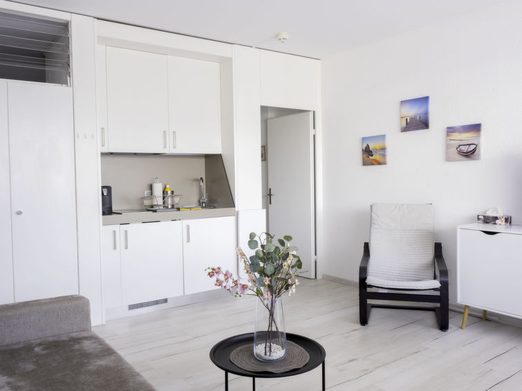 "Lakeview App. 214", 2-Zimmer-Wohnung 40 m2 im 2. Stock. Hell, teilweise renoviert im Jahre 2023, komfortabel und modern eingerichtet: Wohn-/Schlafzimmer mit 1 Diwanbett (160 cm, Länge 200 cm), Esstisch, Digital-TV, Flachbildschirm und Klimaanlage. Ausgang zum Balkon. 1 kleines Zimmer, ohne Fenster mit 1 x 1 Etagenbetten (140 cm, Länge 200 cm), Ventilator. Kleine Küche (2 Induktionskochplatten, Toaster, Wasserkocher, Mikrowelle, elektrische Kaffeemaschine, Kapseln für die Kaffeemaschine (DELIZIO) extra, Fondue Set (Käse)). Bad/WC, Doppelwaschbecken. Heizung. Grosser Balkon, Nordlage und Westlage. Balkonmöbel. Schöne Sicht auf den See, die Berge und die Landschaft. Zur Verfügung: Kinderhochstuhl, Babybett bis 2 Jahre (extra), Haartrockner. Internet (Wireless LAN, gratis). Bitte beachten: geeignet für Familien. Nichtraucher-Unterkunft. Achtung: Fenster im Schlafzimmer zum Lüftugsschacht. NL-00003226