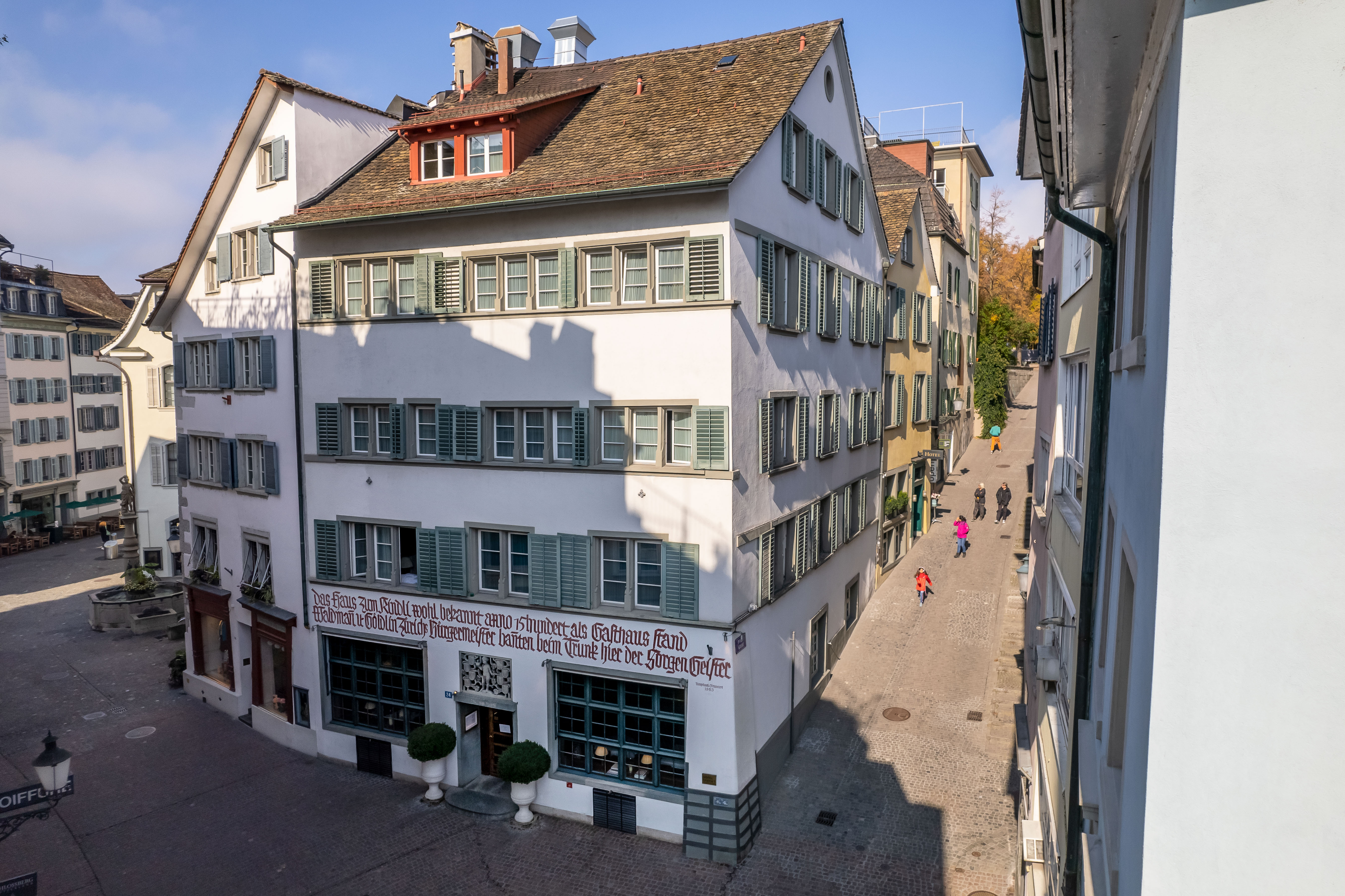 Beim historischen Lindenhof gelegen, mitten in der Zürcher Altstadt und nur wenige Gehminuten von der renommierten Bahnhofstrasse, behält das charmante Boutique Hotel den Charakter eines privaten Hauses. Die 20 Zimmer und 6 Business Apartments sind individuell gestaltet und strahlen Wärme, Komfort und schlichte Eleganz aus.