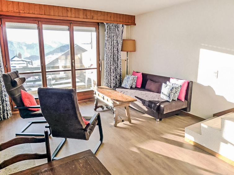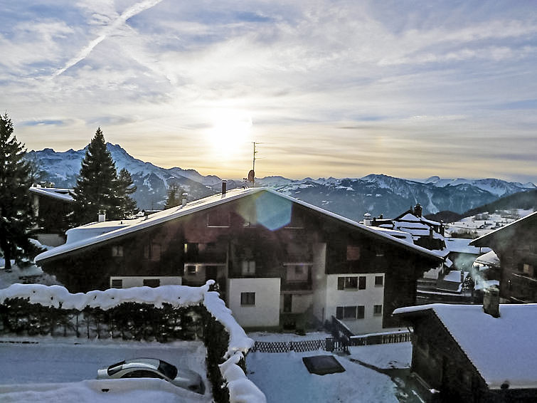 Residenz "Villars Soleil", auf 4 Stockwerken. Im Ortszentrum von Villars, an einer Strasse, Richtung Südosten. Im Hause: Fahrstuhl, Zentralheizung, Waschmaschine (extra), Wäschetrockner (zur Mitbenutzung, extra). Gemeinschaftsgarage. Einkaufsgeschäft, Lebensmittelgeschäft 200 m, Restaurant 20 m, Bäckerei 400 m, Zentrum zu Fuss in 1 Minuten erreichbar, Bushaltestelle, Bahnstation "Villars-Bretaye", Hallenbad 1 km, Thermalbad "Lavey-les-bains" 19 km. Sporthafen 25 km, Golfplatz (18 Loch) 7 km, Tennishalle 900 m, Sportzentrum 900 m, Bergeisenbahn 400 m, Gondelbahn 600 m, Skibushaltestelle 140 m, Skischule 450 m, Kinderskischule 500 m, Eisfeld 1 km, Kinderspielplatz 600 m. Der gratis Skibus fährt zum Skigebiet Villars.