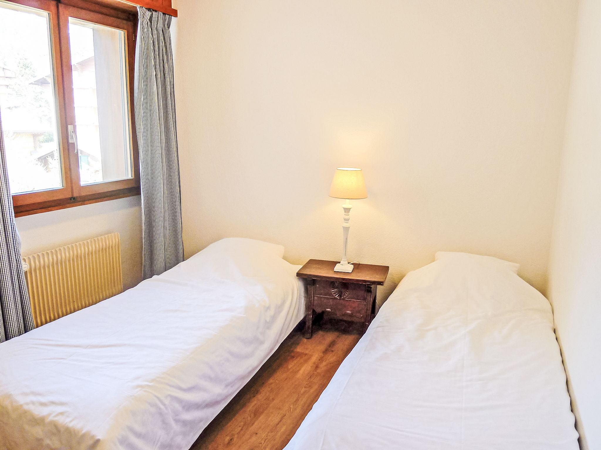 "Villars Soleil A27", 3-Zimmer-Maisonette-Wohnung 70 m2 im 3. Stock, Südostlage. Zweckmässig eingerichtet: Wohn-/Esszimmer mit offenem Kamin (nur Deko), Esstisch und TV. Ausgang zum Balkon. 1 Zimmer, ohne Schrank mit 2 Betten. 1 Zimmer mit 2 Betten. Offene Küche (3 Kochplatten, Backofen, Toaster, Wasserkocher, elektrische Kaffeemaschine, Racletteofen, Fondue Set (Käse)). Bad/Bidet/WC. Balkon. Terrassenmöbel. Eingeschränkte Sicht auf die Berge und die Landschaft. Zur Verfügung: Haartrockner. Internet (Wireless LAN, gratis). Garage Nr. H. Bitte beachten: Wohnung auf Strassenseite. Kühlschrank ohne Gefrierfach. Maximal 1 Haustier/Hund erlaubt.