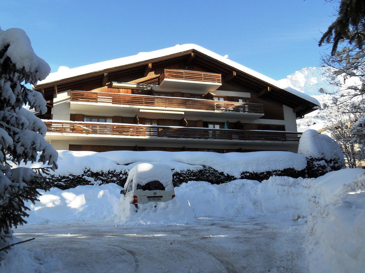 3 Zimmerwohnung *** - 2. Stock – in ruhiger Umgebung - in der Nähe vom Zentrum, Geschäfte und Bushaltestelle – sonniger Balkon gegen Süden gelegen mit sehr schöner Aussicht – Eingang mit Garderobe – Wohnzimmer mit Essecke, Bettsofa (2 Personen), Kabel TV und dekorativen Kamin – 1 Schlafzimmmer mit 1 Doppelbett – 1 Schlafzimmer mit 1 Etagenbett (2 Personen) – 1 Badezimmer mit WC – 1 Gäste WC – Skiraum – 1 Aussenparkplatz. KEINE HAUSTIERE. NICHT RAUCHER.