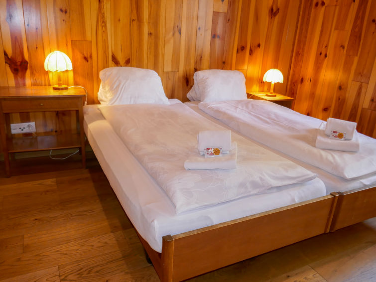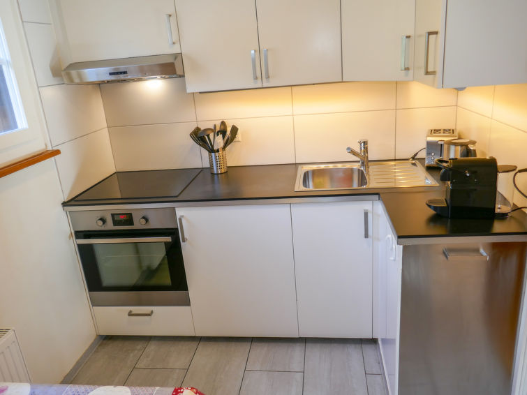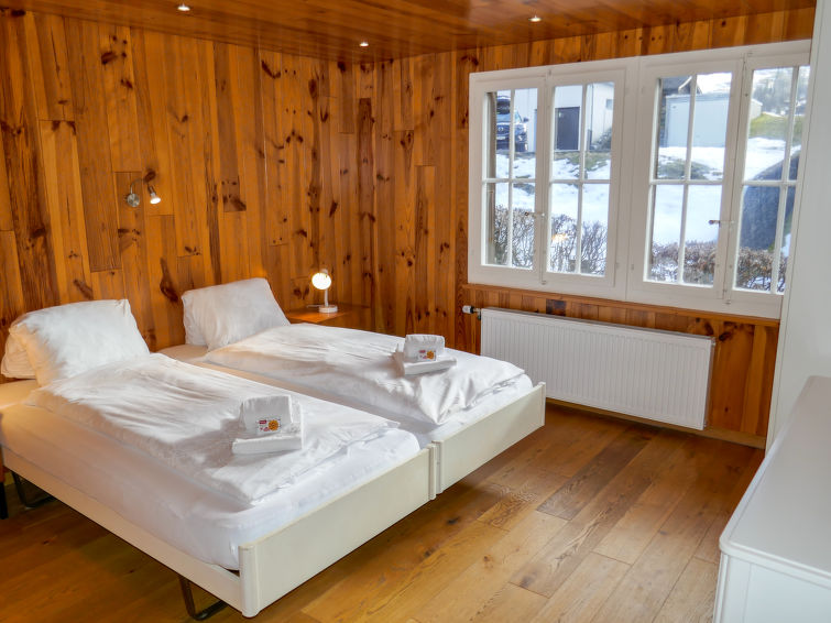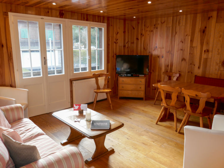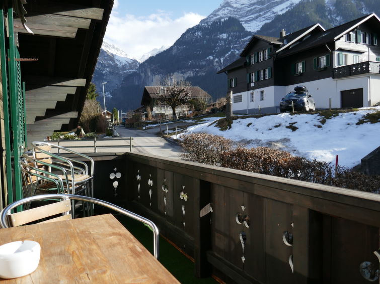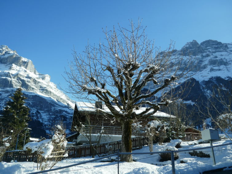 3-Zimmer-Wohnung 60 m2 im 1. Stock, Südlage. Gemütlich und mit viel Holz eingerichtet: Wohn-/Esszimmer mit Digital-TV, Internationale TV-Sender, Flachbildschirm und Radio. Ausgang zum Balkon, Richtung Süden. 2 Zimmer, jedes Zimmer mit 2 Betten (90 cm, Länge 200 cm). Wohnküche (Backofen, 4 Glaskeramikplatten, Toaster, Wasserkocher, elektrische Kaffeemaschine, Kapseln für die Kaffeemaschine (Nespresso) extra, Racletteofen, Fondue Set (Käse)). Dusche/WC. Parkettboden. Balkon 6 m2, Südlage. Balkonmöbel. Schöne Sicht auf die Berge und Eigernordwand. Zur Verfügung: Haartrockner. Internet (Wireless LAN, gratis). Parkplatz Nr. 1 beim Haus. Bitte beachten: Nichtraucher-Unterkunft. Feuerlöscher.