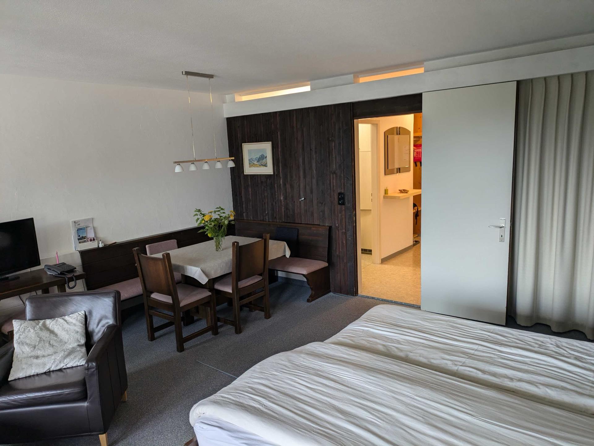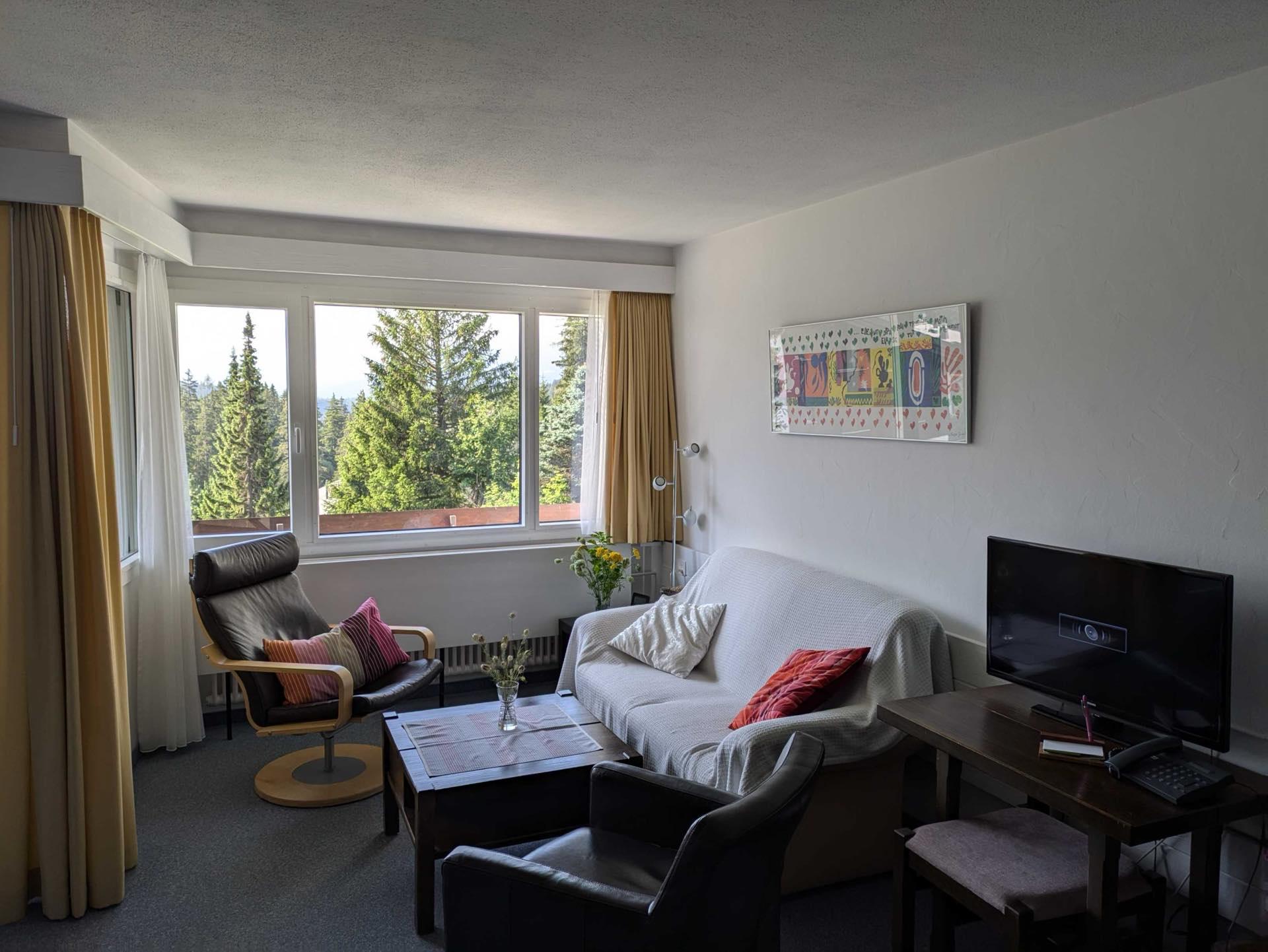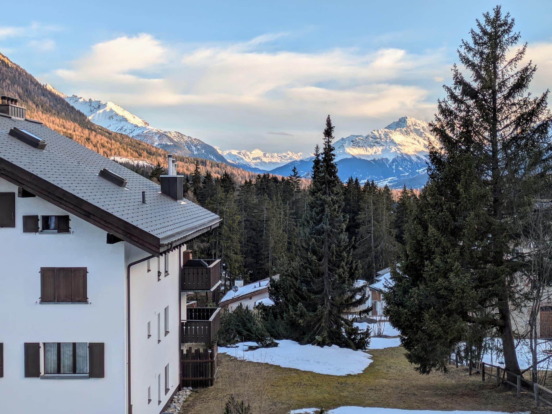 Appartementhaus Chesa Clois abseits der Hauptstrasse an ruhiger, sonniger Lage, 200 m vom Zentrum. Langlaufloipe, Bergbahnen im Winter auf Skis erreichbar. Eisbahn, Curling- und Tennisplätze in unmittelbarer Nähe. Dachterrasse, Hausbar (nur im Winter), Aufenthaltsraum mit TV, Kegelbahn (extra), Tischtennis, Billard (extra), Kinderspielzimmer, Kiosk, Lift, Waschküche, Kleines Hallenbad und Sauna (extra).