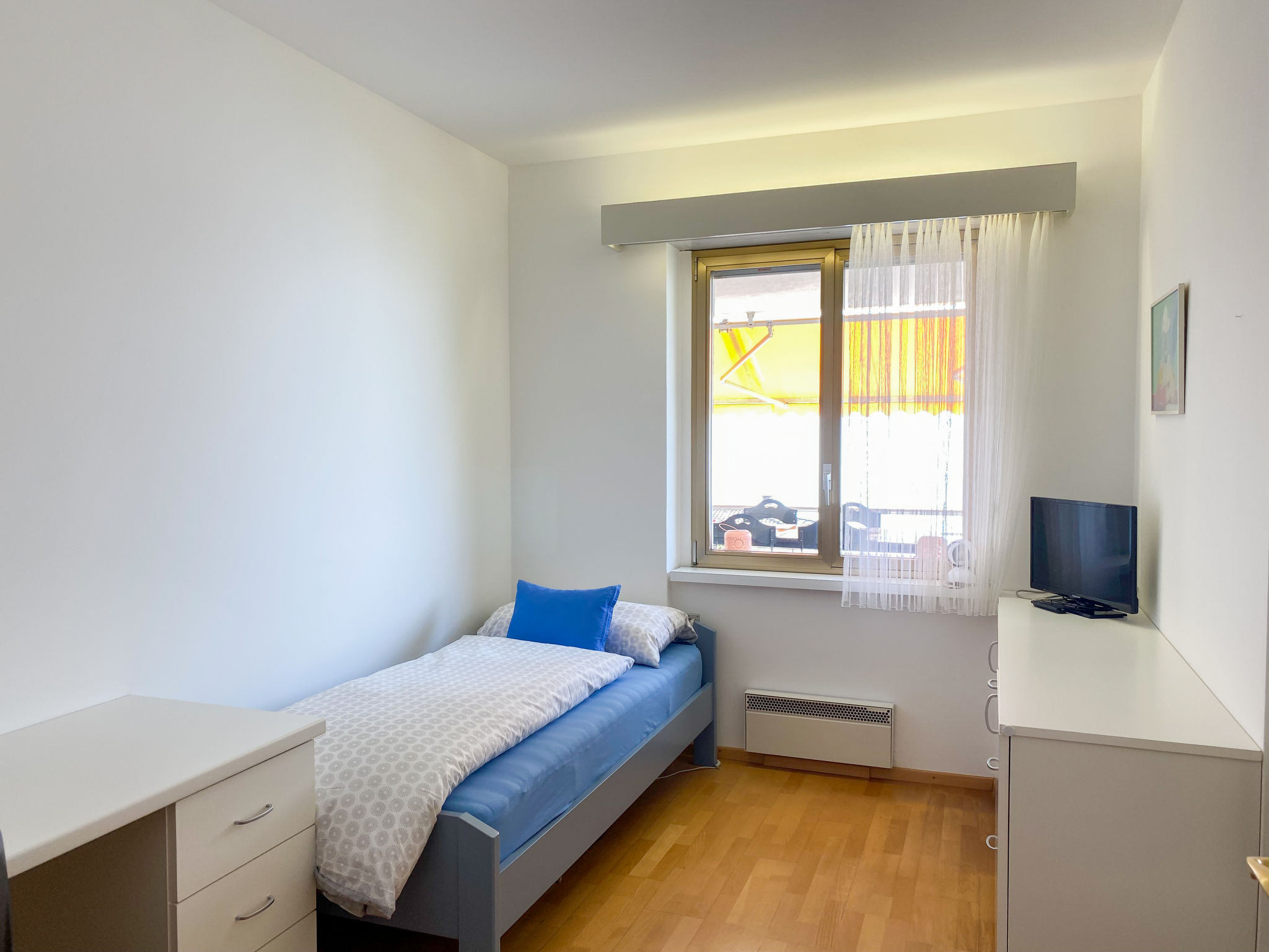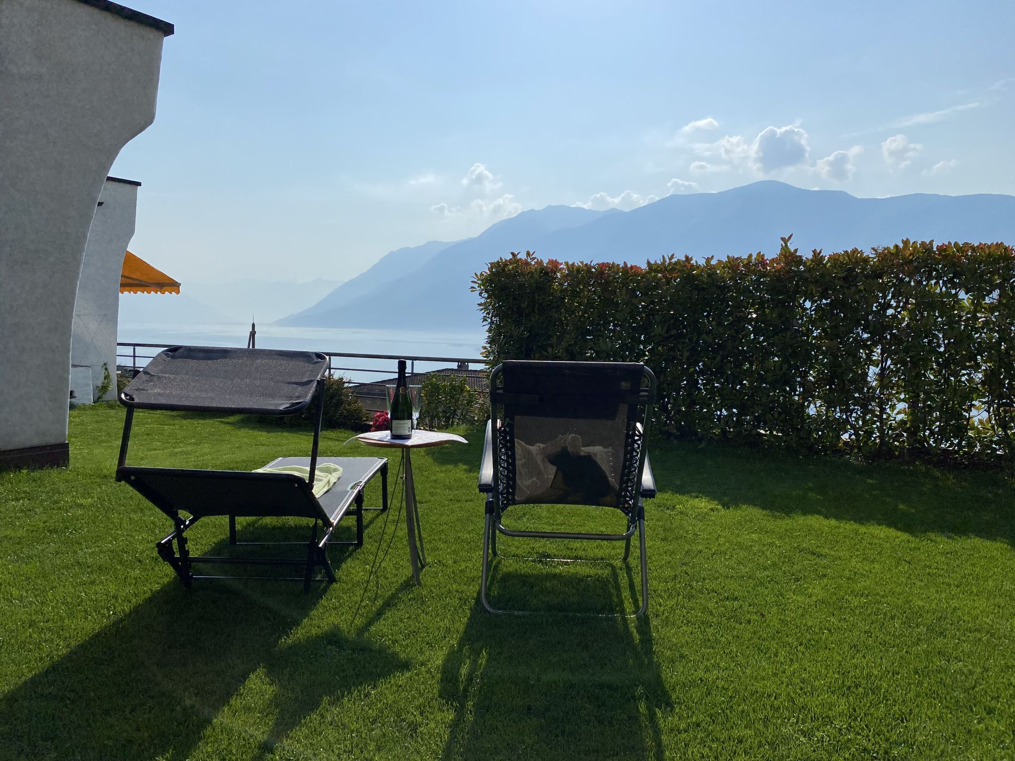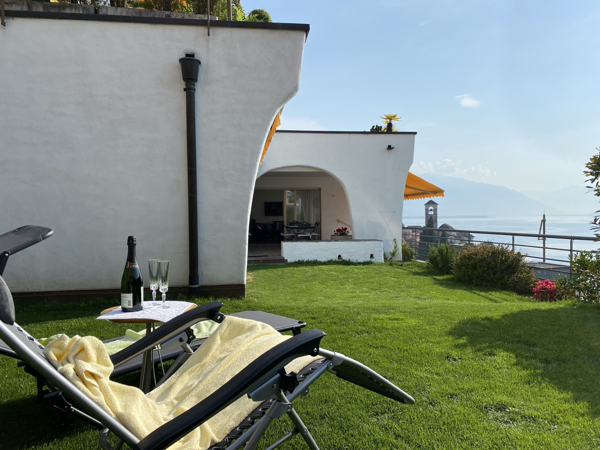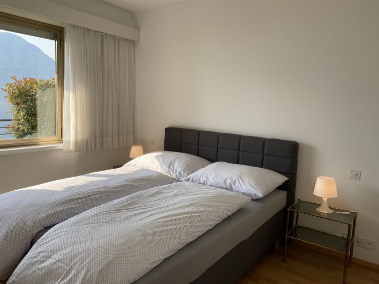 "Lakeview", 4-Zimmer-Wohnung 160 m2, Südwestlage. Geräumig und hell, komfortabel und gemütlich eingerichtet: offenes grosses Wohn-/Esszimmer mit Panoramafenster mit Kabel-TV und Internationale TV-Sender (Flachbildschirm). Ausgang zur Terrasse. 1 Zimmer mit 1 Bett (90 cm, Länge 200 cm), Kabel-TV (Flachbildschirm). 1 Doppelzimmer mit 1 Doppelbett (160 cm, Länge 200 cm). 1 Doppelzimmer mit 1 Doppelbett (2 x 80 cm, Länge 200 cm), Dusche/Bidet/WC und Sprudelbad. Küche (Backofen, Geschirrspüler, 4 Glaskeramikplatten, Toaster, Wasserkocher, Mikrowelle, elektrische Kaffeemaschine, Kapseln für die Kaffeemaschine (Nespresso) extra, Racletteofen, Fondue Set (Chinoise, Käse)). Ausgang zur Terrasse. Bad/WC, sep. WC. Grosse Terrasse teilweise überdacht, Gartensitzplatz. Terrassenmöbel, Liegestühle (5). Herrliche Panoramasicht auf den See, die Berge und die Landschaft. Zur Verfügung: Waschmaschine, Wäschetrockner, Bügeleisen, Kinderhochstuhl, Babybett bis 2 Jahre (extra), Haartrockner. Internet (WLAN, gratis). Parkplatz Nr. 1 (überdacht). Bitte beachten: Nichtraucher-Unterkunft. NL-00005856