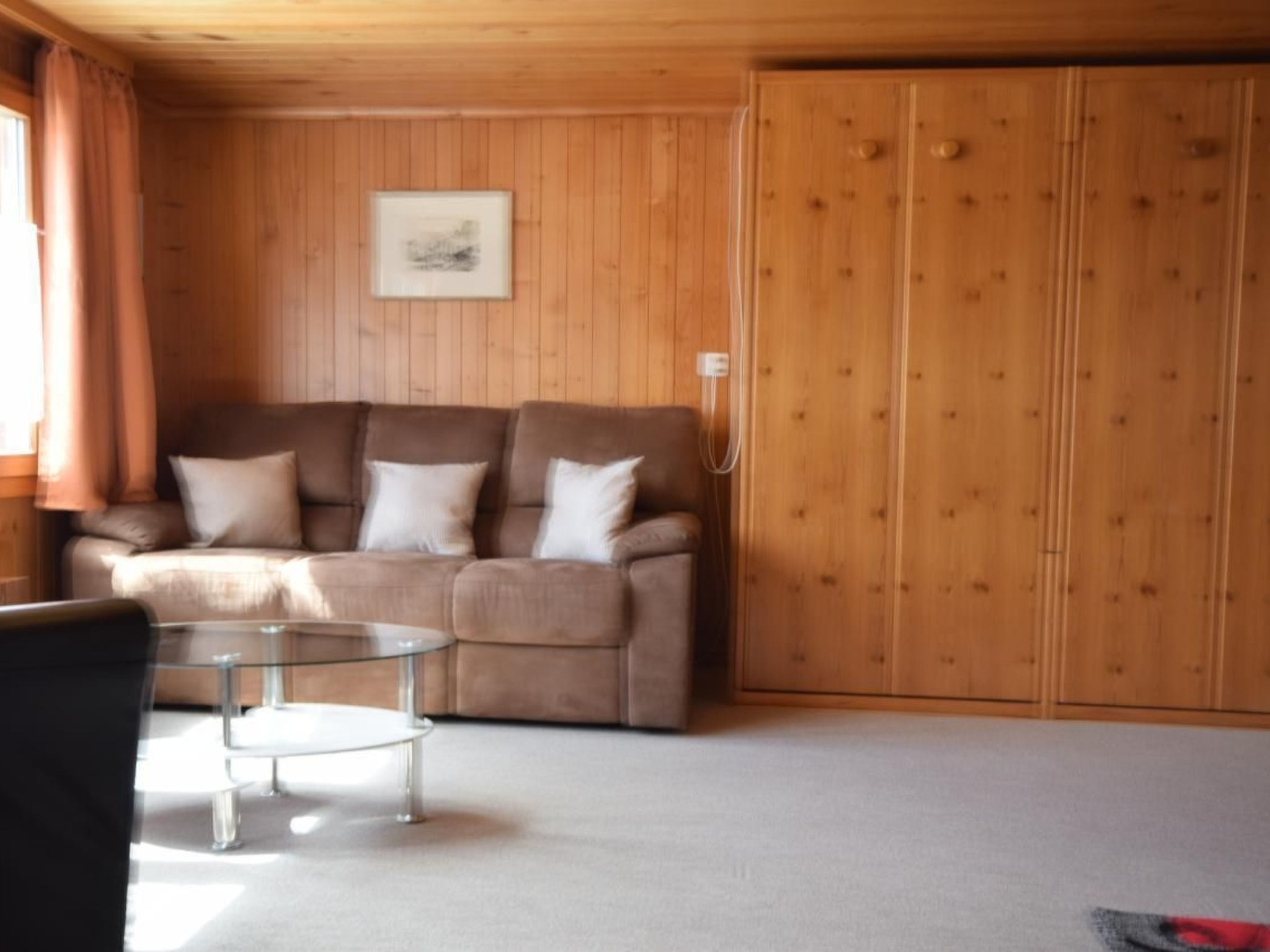 Im Inneren des Apartments erwartet Sie ein grosses und sonniges Wohnzimmer mit einer gemütlichen Essecke und 2 Klappbetten, ausgestattet mit Swisscom-TV, Radio und kostenloses WLAN für Ihre Unterhaltung.
