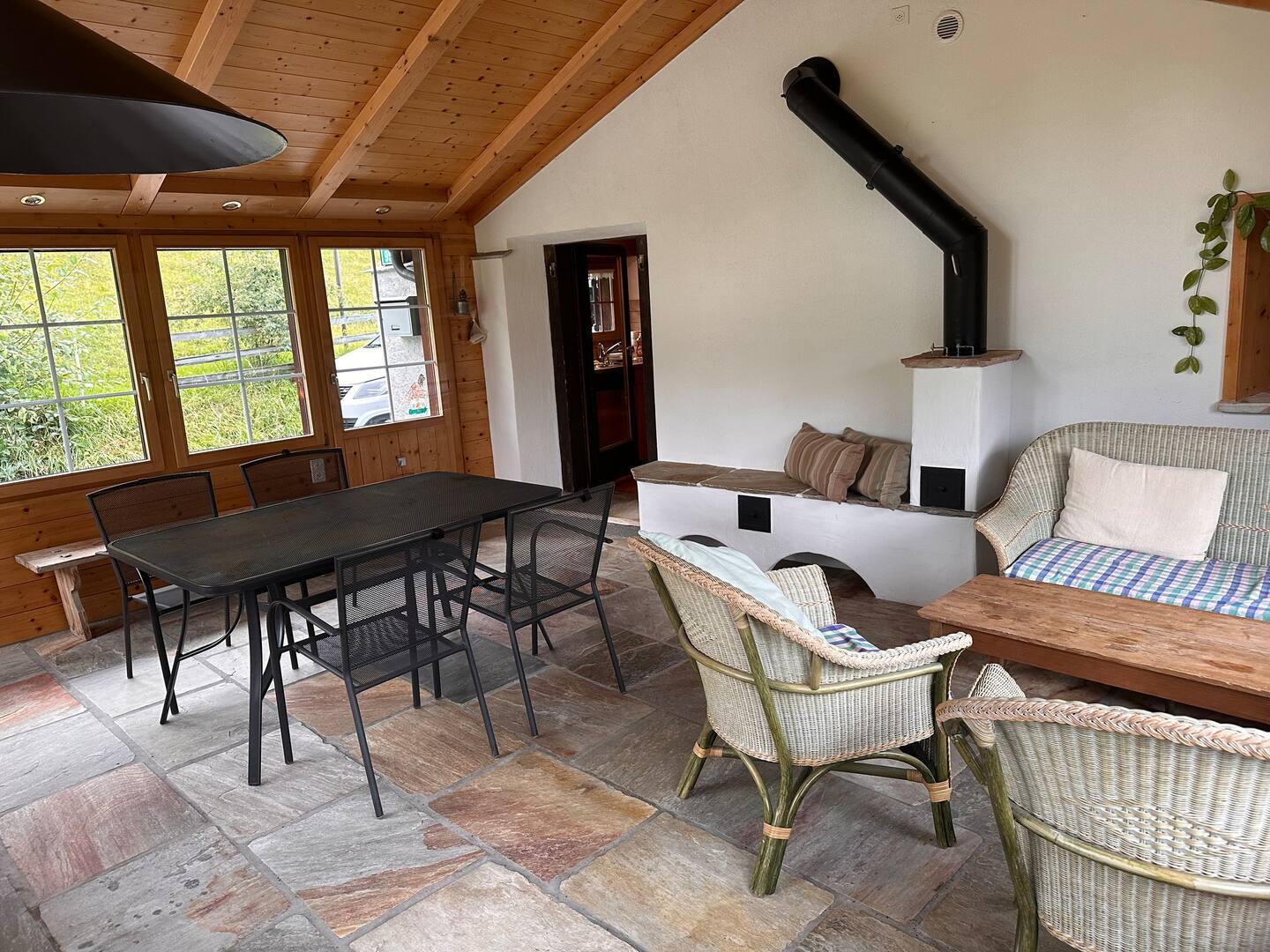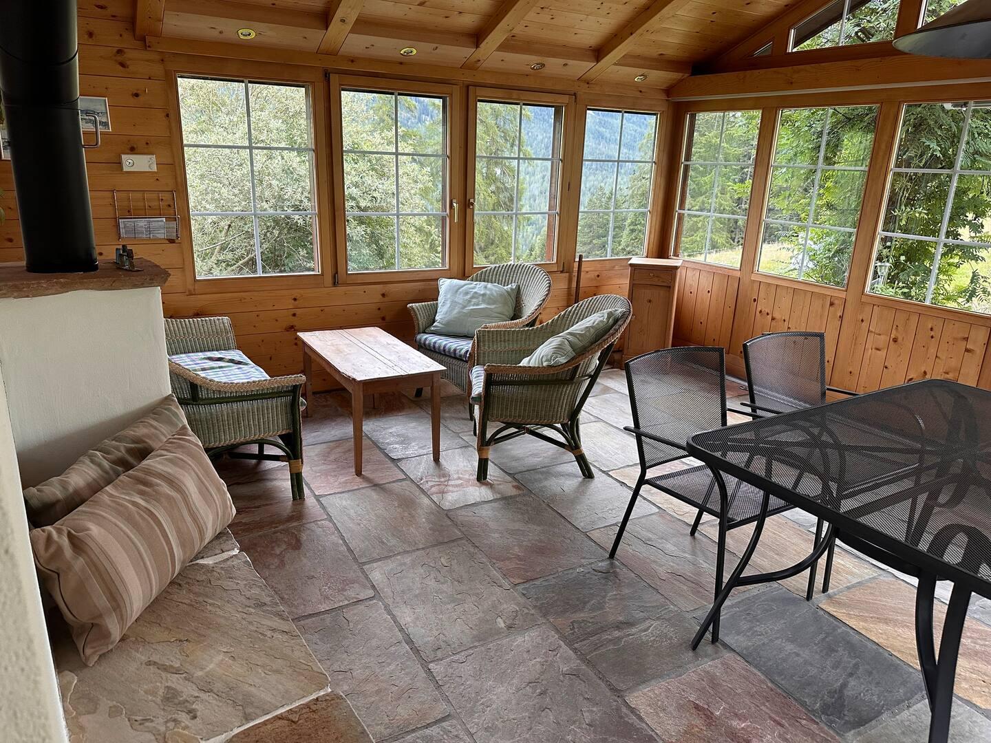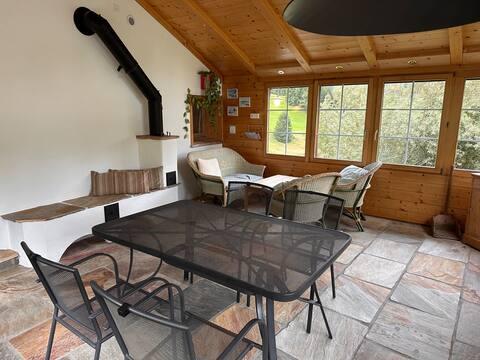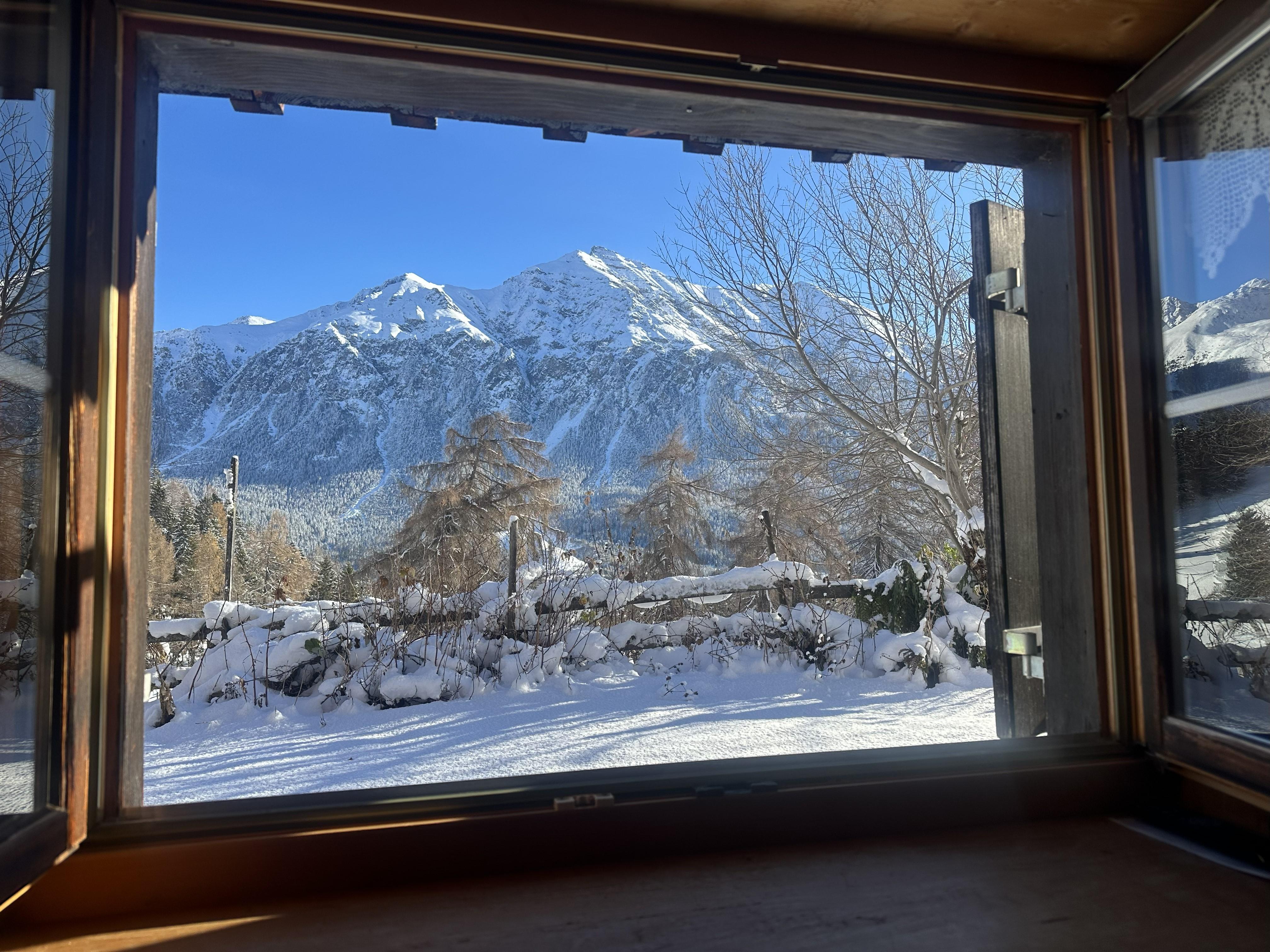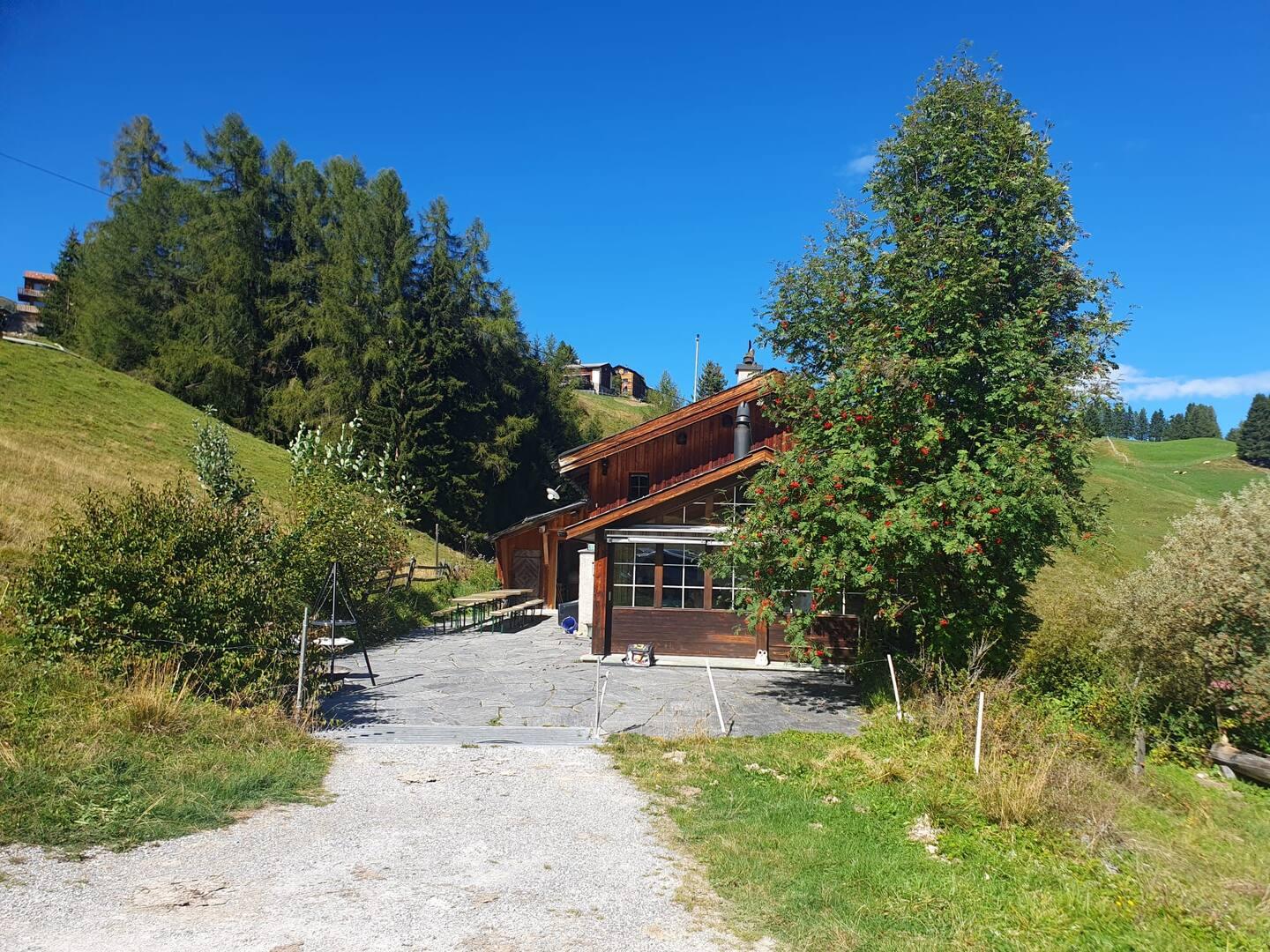 Das Maiensäss liegt mitten in einer Weide am Rand von Sporz mit wunderschöner Aussicht auf die umliegende Bergwelt. Das heimelige Haus lädt zum Verweilen ein und bietet Raum für gemütliches Beisammensein.