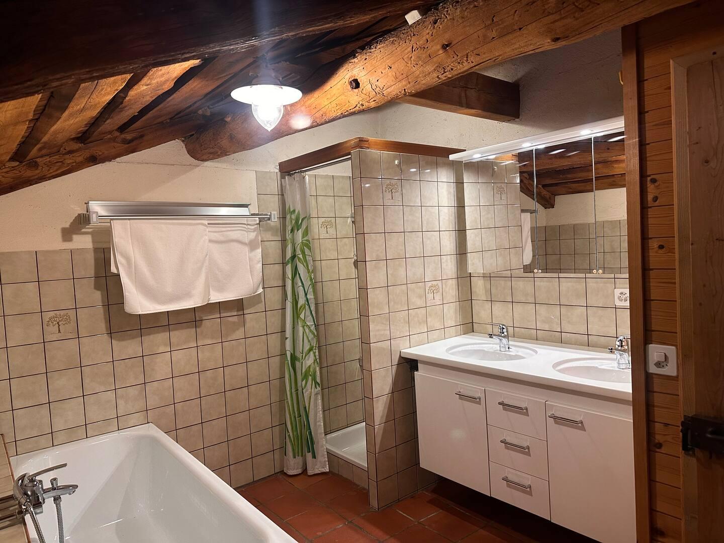 Die beiden Wohnungen verfügen über einen eigenen Eingang und sind vollständig ausgestattet. Sie sind über ein Treppenhaus miteinander verbunden, das bei Bedarf von beiden Seiten her abgeschlossen werden kann.