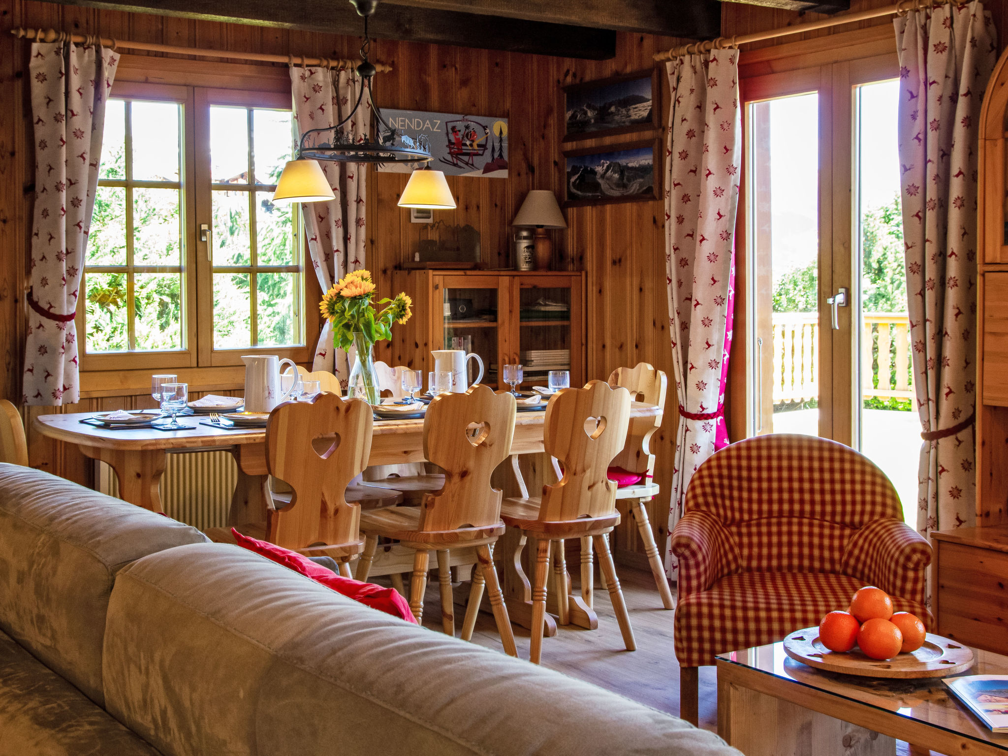 "Mirabeau 6", 5-Zimmer-Chalet 105 m2 auf 2 Stockwerken, Ostlage. Teilweise abgeschrägt, teilweise renoviert im Jahre 2024, komfortabel und schön eingerichtet: Eingang. Wohn-/Esszimmer mit offenem Kamin, Kabel-TV und Stereoanlage. Ausgang zum Garten, zur Terrasse. Wohnzimmer mit Kabel-TV. 1 Kinderzimmer mit 1 x 2 Etagenbetten (90 cm, Länge 190 cm). Offene Küche (Backofen, Geschirrspüler, 4 Glaskeramikplatten, Toaster, Wasserkocher, Mikrowelle, Tiefkühler, elektrische Kaffeemaschine, Kapseln für die Kaffeemaschine (nespresso) extra, Racletteofen, Fondue Set (Käse)). Dusche/WC. E-Heizung. Obergeschoss: 1 Zimmer mit 1 Doppelbett (2 x 80 cm, Länge 200 cm). Ausgang zum Balkon, Richtung Osten. 1 Zimmer mit 2 Betten (90 cm, Länge 200 cm). Dusche/WC. Balkon, Ostlage, Terrasse, Ostlage. Terrassenmöbel, Gartengrill (mobil), Liegestühle. Sehr schöne Sicht auf die Berge und das Tal. Zur Verfügung: Waschmaschine, Wäschetrockner, Kinderhochstuhl, Babybett, Haartrockner. Internet (WLAN, gratis). Parkplatz (1 Auto), Garage (extra) (1 Auto), Höhe 200 cm, Breite 240 cm. Bitte beachten: Nichtraucher-Unterkunft. Maximal 1 Haustier/Hund erlaubt.