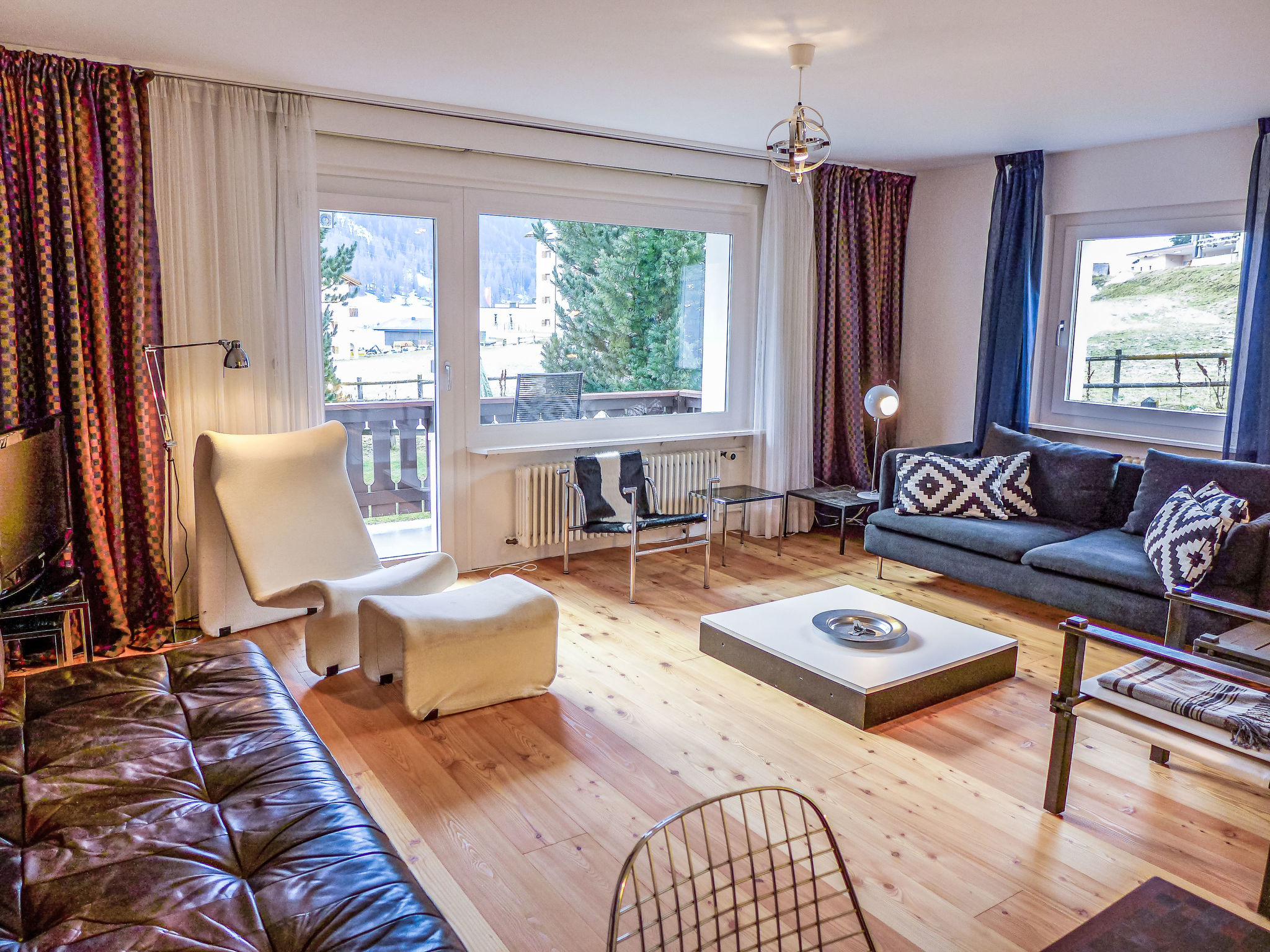 "Chesa Vuorcha", 3-Zimmer-Wohnung 100 m2, im erhöhten Erdgeschoss. Geräumig und hell, teilweise renoviert im Jahre 2014, komfortabel und modern eingerichtet: offenes Wohn-/Esszimmer mit TV. Ausgang zum Balkon, Richtung Süden. 1 Zimmer mit 1 Doppelbett (2 x 90 cm, Länge 200 cm). Ausgang zum Balkon. 1 Zimmer mit 1 Doppelbett (2 x 90 cm, Länge 200 cm). Kleine, offene Küche (Backofen, Geschirrspüler, 4 Glaskeramikplatten, Toaster, Wasserkocher, elektrische Kaffeemaschine, Kapseln für die Kaffeemaschine (Nespresso) extra, Fondue Set (Chinoise, Käse)). Bad/WC, sep. WC. Heizung. Holzdielenboden. Schöne Sicht auf die Berge und die Landschaft. Zur Verfügung: Haartrockner. Internet (Wireless LAN, gratis). Parkplatz, Garage Nr. Cramer, Höhe 200 cm, Breite 220 cm. Bitte beachten: geeignet für Familien. Nichtraucher-Unterkunft. Maximal 1 Haustier/Hund erlaubt.