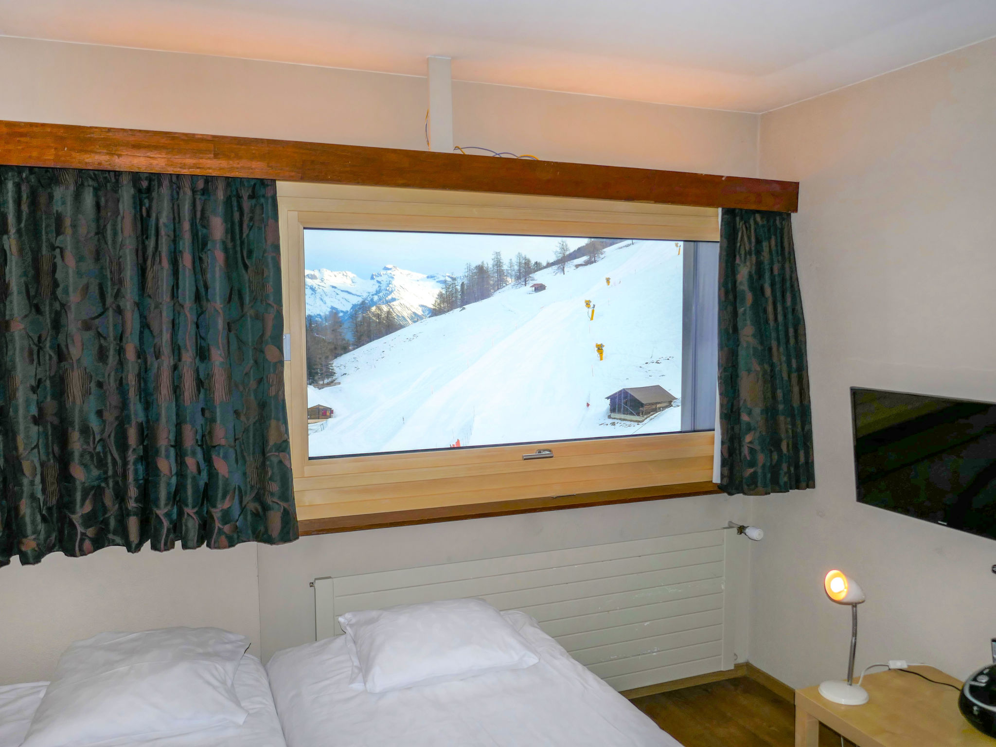 "Rosablanche C66", 1-Zimmer-Wohnung 20 m2 im 6. Stock, Nordlage. Sehr einfach eingerichtet: Wohn-/Esszimmer mit 1 Ausziehbett (2 Pers.), Kabel-TV. Kochnische (2 Kochplatten). Dusche/WC. Sicht auf die Berge. Bitte beachten: Nichtraucher-Haus. Aufzug C.