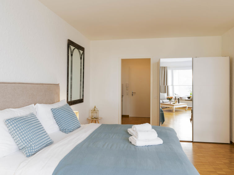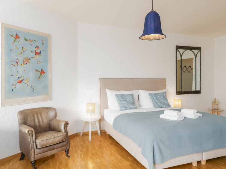 "Double Room Modern", 1-Zimmer-Wohnung 35 m2 im 2. Stock, Südlage. Renoviert: Wohn-/Esszimmer mit 1 Doppelbett (1 x 160 cm, Länge 200 cm), Sat-TV und Radio. Kochnische (Backofen, elektrische Kaffeemaschine, Kapseln für die Kaffeemaschine (Nespresso) extra). Bad/WC. Ölheizung. Balkon, Südlage. Herrliche Sicht auf den See, die Berge und die Ortschaft. Zur Verfügung: Internet (Wireless LAN, gratis). Bitte beachten: Nichtraucher-Unterkunft. Maximal 1 Haustier/Hund erlaubt. NL-00004955