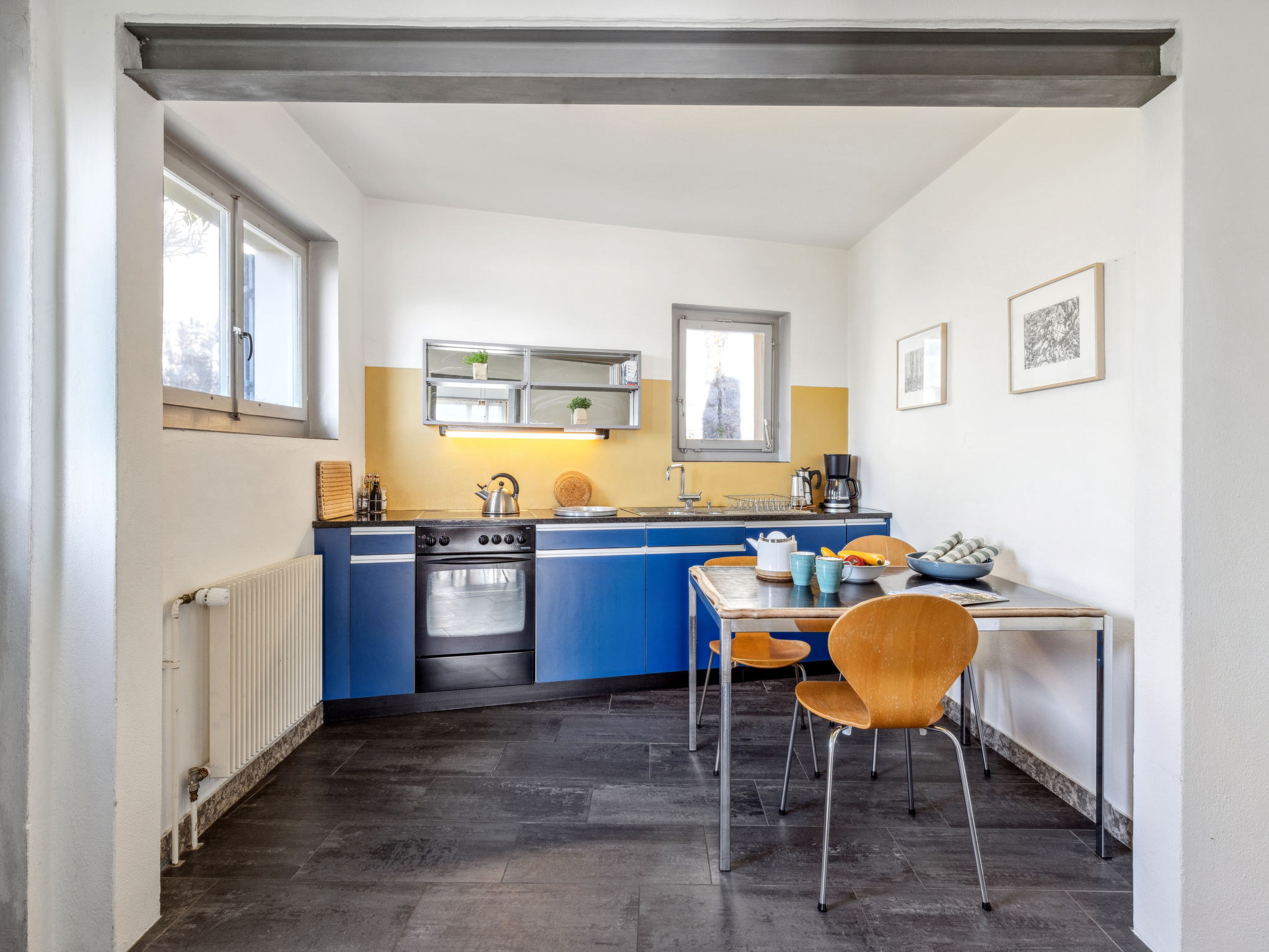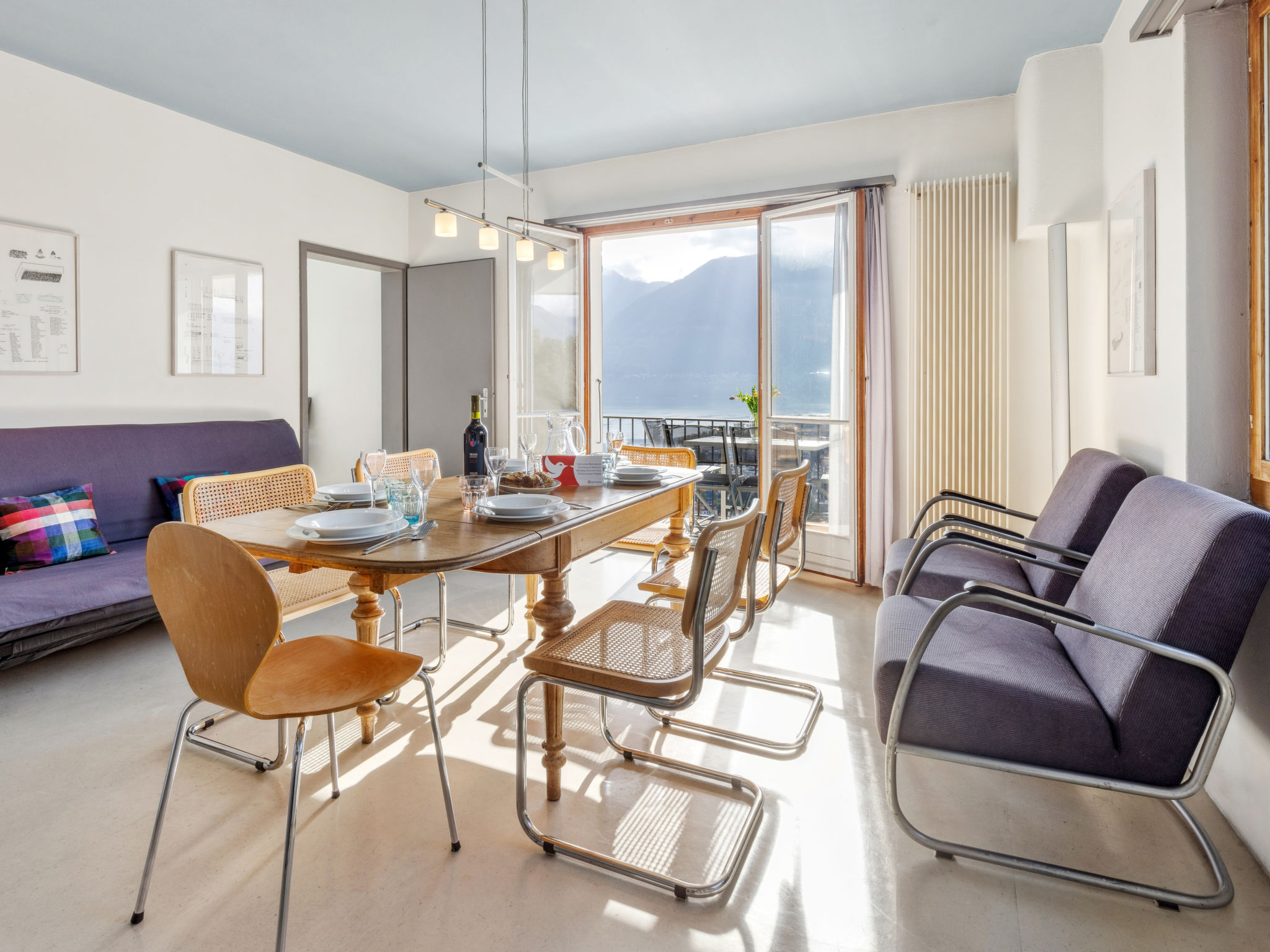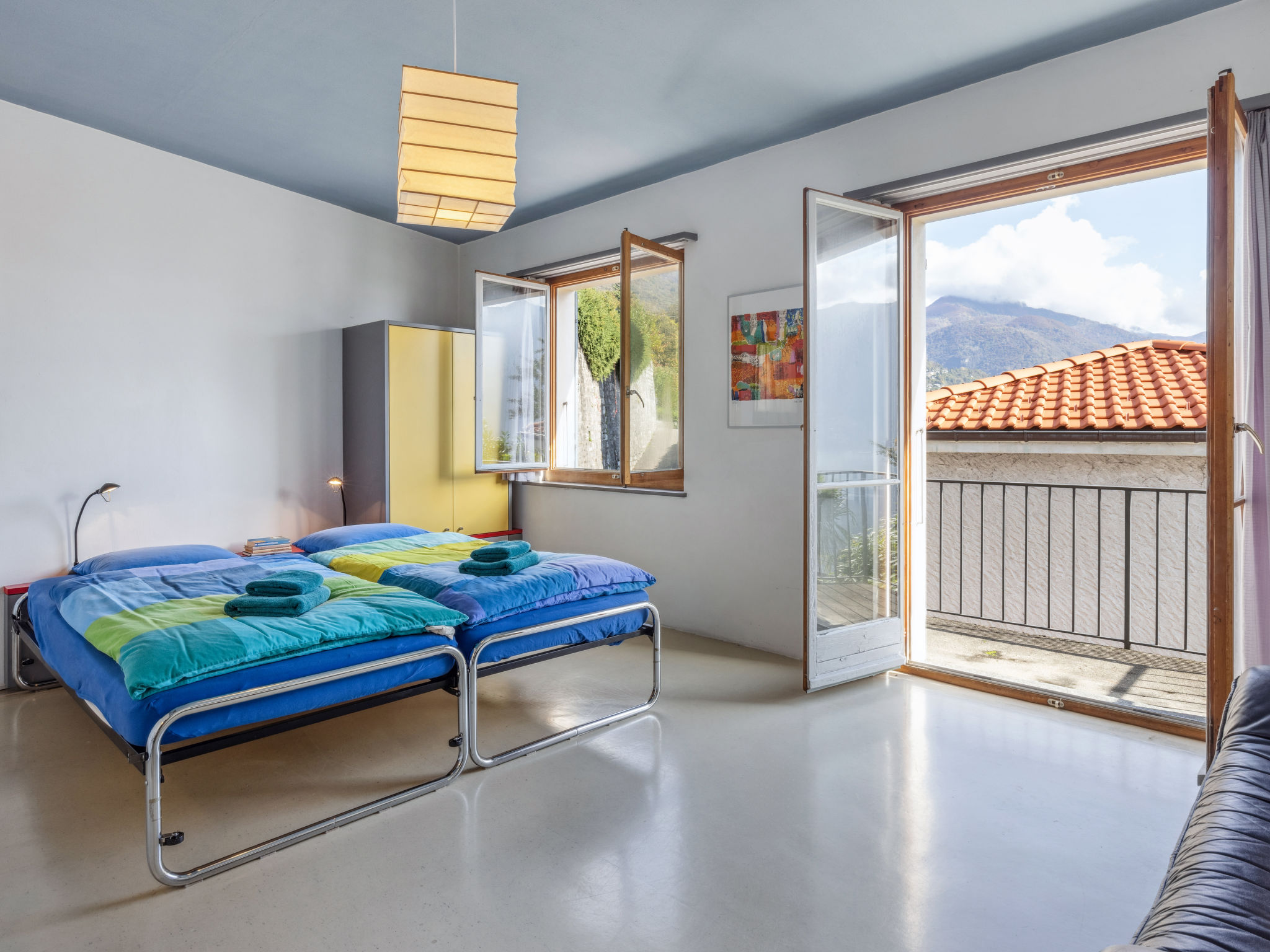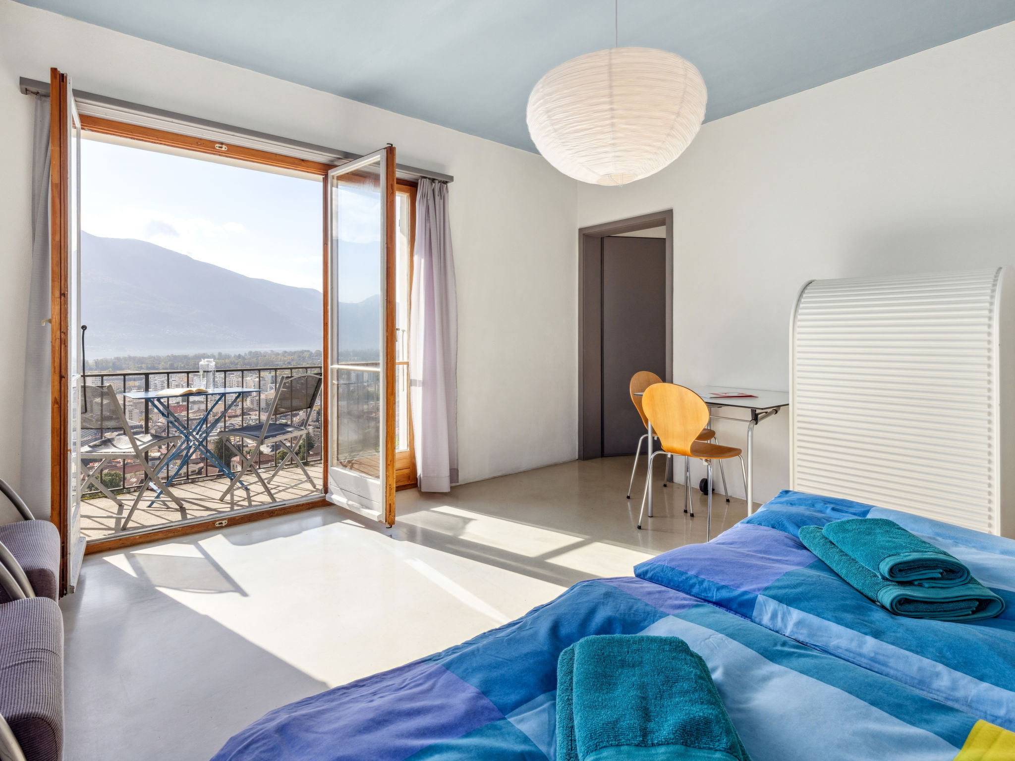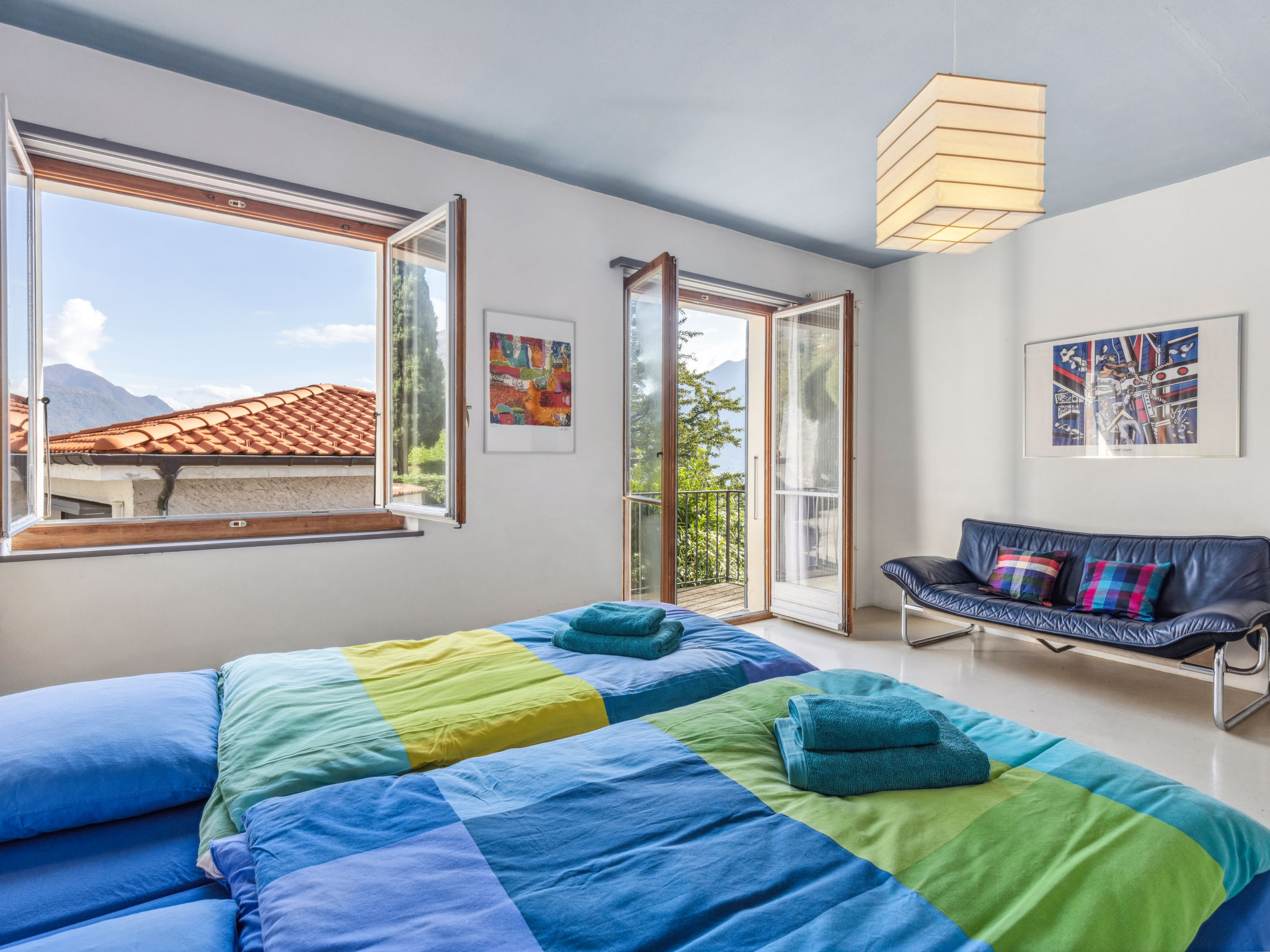 "Egner- Apt.Panorama", 3-Zimmer-Wohnung im Obergeschoss, Südlage. Objekt geeignet für 3 Erwachsene + 3 Kinder. Zweckmässig und gemütlich eingerichtet: Wohn-/Schlafzimmer mit 1 Diwanbett (140 cm, Länge 200 cm). Ausgang zum Balkon. 1 Doppelzimmer mit 2 Betten (90 cm, Länge 200 cm). 1 Doppelzimmer mit 2 Betten (90 cm, Länge 200 cm). Küche (Backofen, 4 Glaskeramikplatten, Wasserkocher, elektrische Kaffeemaschine) mit Esstisch. Bad/WC. Heizung. Balkon. Balkonmöbel. Schöne Panoramasicht auf den See, die Berge und die Ortschaft. Bitte beachten: geeignet für Familien. Nichtraucher-Unterkunft. Zugang zu der Wohnung über 8 Stufen - kein TV. NL-00004709