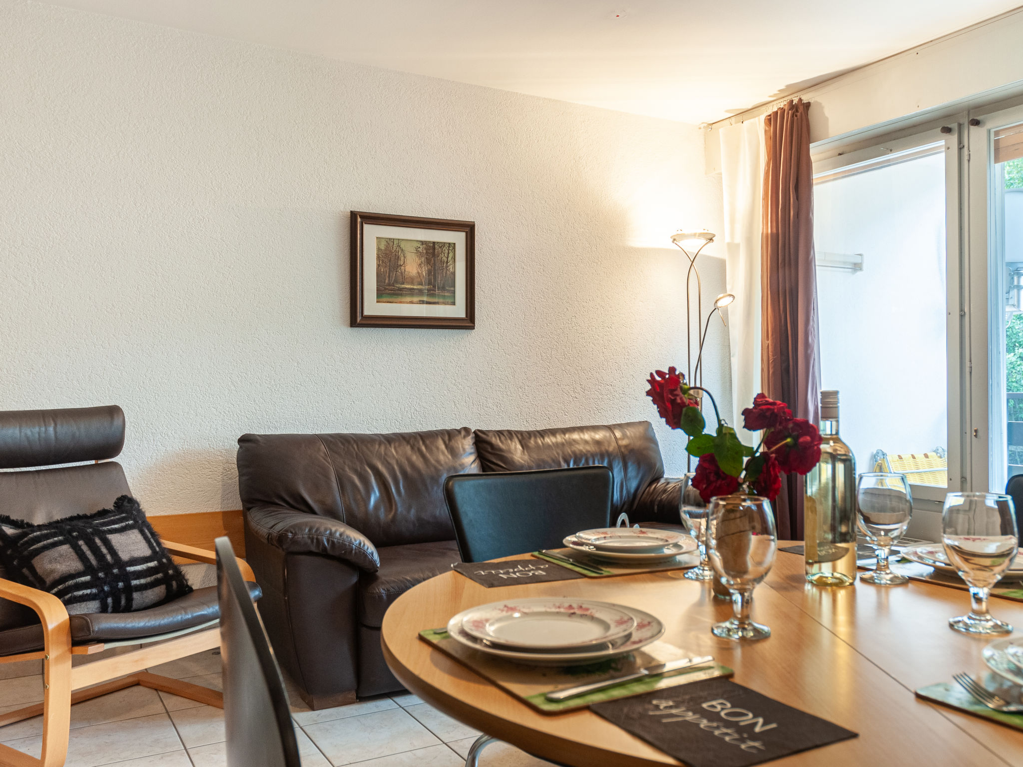 "Montfort 10A", 2-Zimmer-Wohnung 44 m2 im 3. Stock. Zweckmässig eingerichtet: Wohn-/Esszimmer mit 1 Doppeldiwanbett, Kabel-TV, CD und DVD. Ausgang zum Balkon. 1 Zimmer mit 2 Betten (90 cm, Länge 190 cm), 1 Wandschrankbett (90 cm, Länge 190 cm). Offene Küche (Backofen, Geschirrspüler, Toaster, Wasserkocher, Mikrowelle, elektrische Kaffeemaschine, Kapseln für die Kaffeemaschine (NESPRESSO) extra, Fondue Set (Käse)). Bad/WC. Balkon, Südlage und Nordlage. Balkonmöbel. Schöne Sicht auf die Berge und das Tal. Zur Verfügung: Haartrockner. Internet (WLAN, gratis). Bitte beachten: Nichtraucher-Unterkunft.