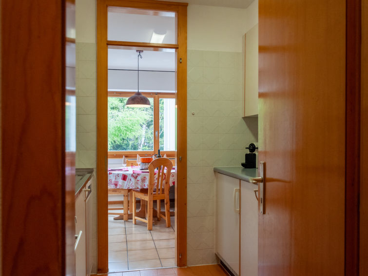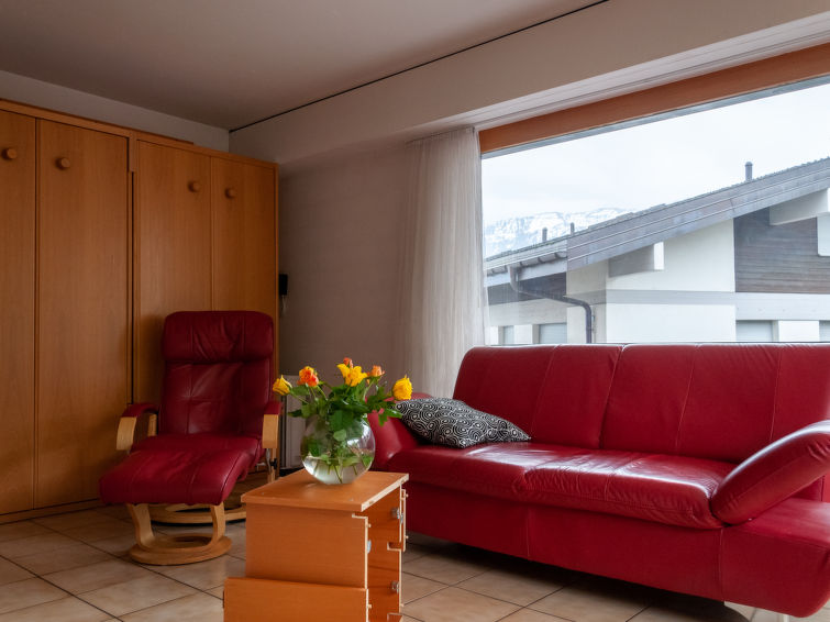 "Diana E2", 2-Zimmer-Wohnung 58 m2 im 2. Stock. Grosses Wohn-/Esszimmer mit 2 Wandschrankbetten (90 cm, Länge 180 cm), offenem Kamin, Kabel-TV, Flachbildschirm und DVD. Ausgang zum Balkon, Richtung Osten. 1 Zimmer mit 1 Doppelbett (2 x 90 cm, Länge 200 cm). Ausgang zum Balkon, Richtung Osten. Küche (3 Kochplatten, Backofen, Geschirrspüler, Toaster, Wasserkocher, Mikrowelle, elektrische Kaffeemaschine, Kapseln für die Kaffeemaschine (nespresso) extra, Racletteofen, Fondue Set (Käse)). Bad/WC. Balkon, Südlage Balkon, Südostlage. Sicht auf die Ortschaft. Zur Verfügung: Haartrockner. Internet (Wireless LAN, gratis). Bitte beachten: Nichtraucher-Unterkunft.