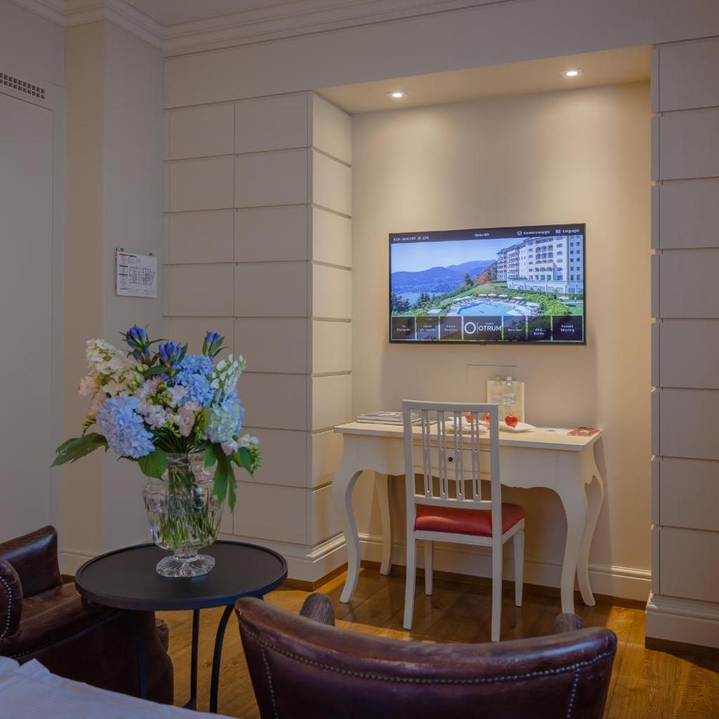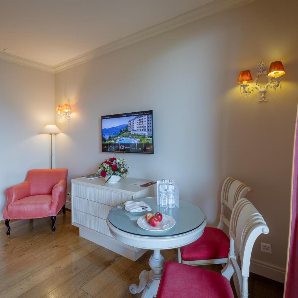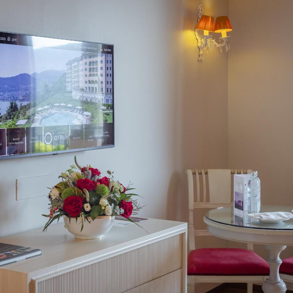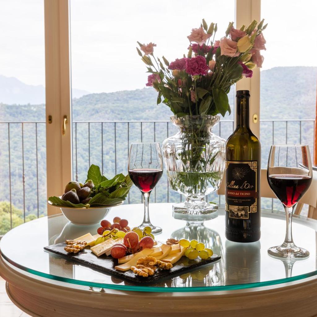 Die geräumigen, klimatisierten Zimmer im Resort Collina d‘Oro - Hotel & Spa verfügen über Parkett und sind elegant mit edlem Stein, Holz sowie hochwertigen Stoffen dekoriert. Die Wohneinheiten verfügen über einen Flachbild-Sat-TV mit 100 Kanälen, einen Wasserkocher und ein geräumiges Bad mit Bademänteln, Hausschuhen und einem multifunktionalen Duschkopf. Eine Auswahl an Kissen und Mineralwasser werden zur Verfügung gestellt.