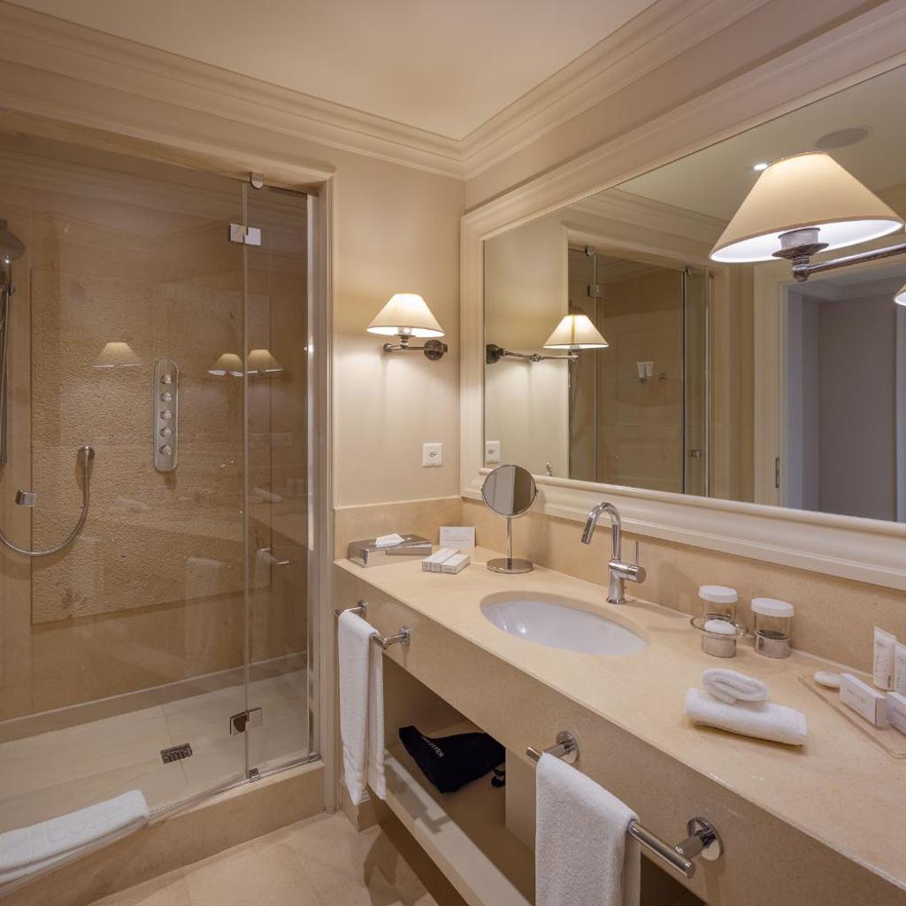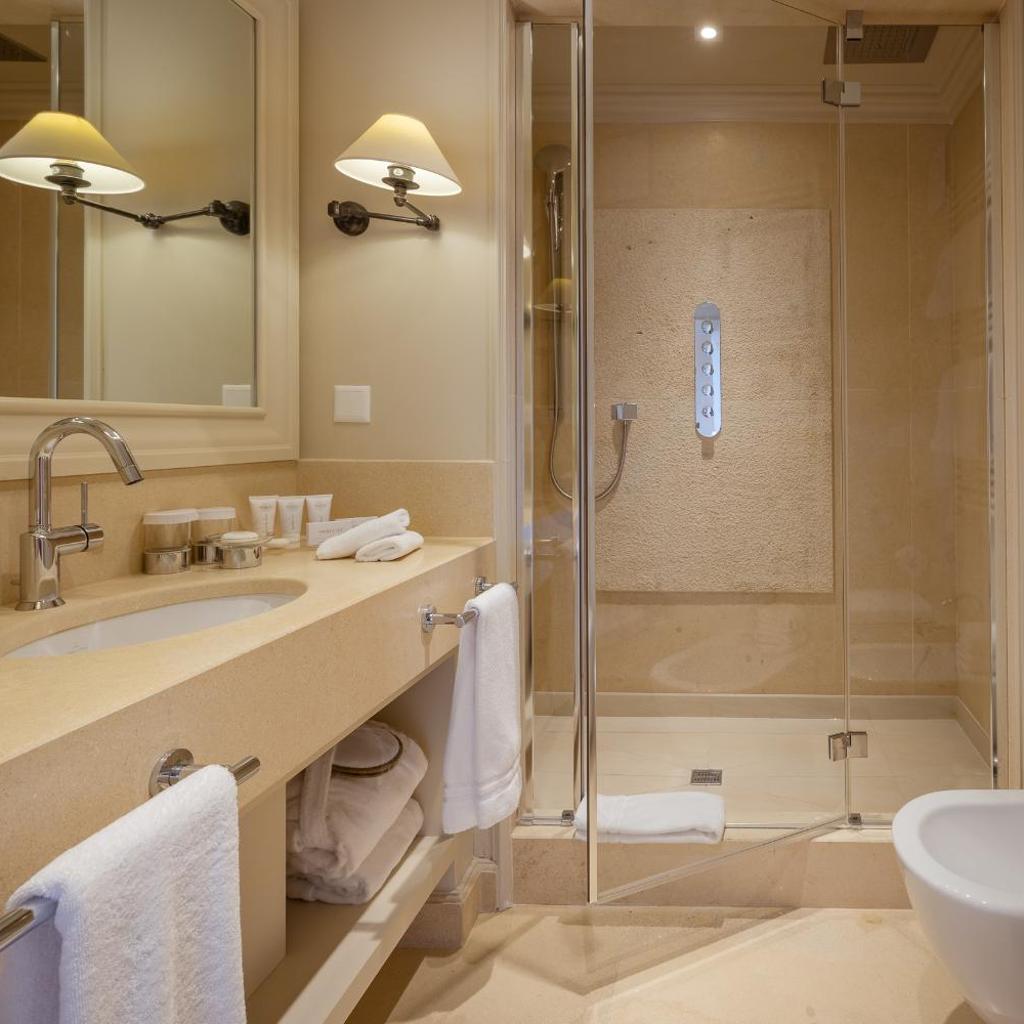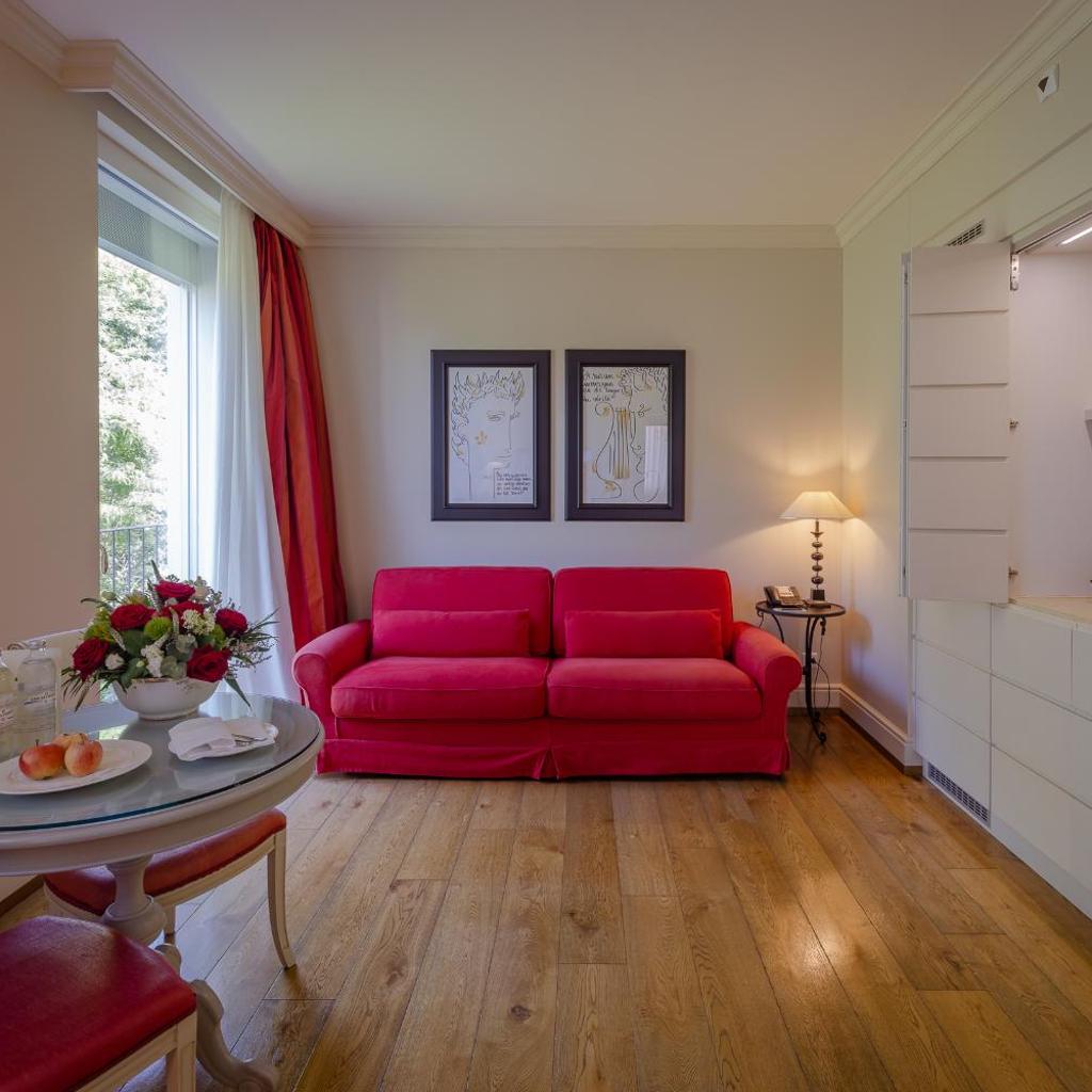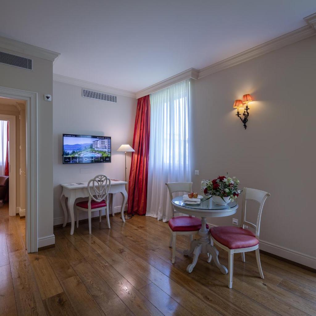 Die geräumigen, klimatisierten Zimmer im Resort Collina d‘Oro - Hotel & Spa verfügen über Parkett und sind elegant mit edlem Stein, Holz sowie hochwertigen Stoffen dekoriert. Die Wohneinheiten verfügen über einen Flachbild-Sat-TV mit 100 Kanälen, einen Wasserkocher und ein geräumiges Bad mit Bademänteln, Hausschuhen und einem multifunktionalen Duschkopf. Eine Auswahl an Kissen und Mineralwasser werden zur Verfügung gestellt.