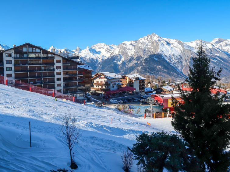Residenz "Les Hauts de Nendaz". Im Ort, erhöhte Lage, 10 m vom Skigebiet. Im Hause: Fahrstuhl, Skiraum, Zentralheizung, Waschmaschine, Wäschetrockner (zur Mitbenutzung, extra). Steile Zufahrt bis zum Haus. Im Winter bitte Schneeketten mitbringen. Supermarkt 700 m, Restaurant, Bäckerei 500 m, Bushaltestelle "Haute-Nendaz, télécabine" 550 m, Bahnstation "Sion" 16.7 km, Freibad 1.2 km. Golfplatz (18 Loch) 16 km, Tennis 1.2 km, Gondelbahn 450 m. Bekannte Skigebiete sind gut erreichbar: Nendaz 4 vallées Tracouet 50 m. Bitte beachten: Bei guter Schneelage Zufahrt mit den Skiern bis zum Haus. Weitere Unterkünfte sind buchbar.