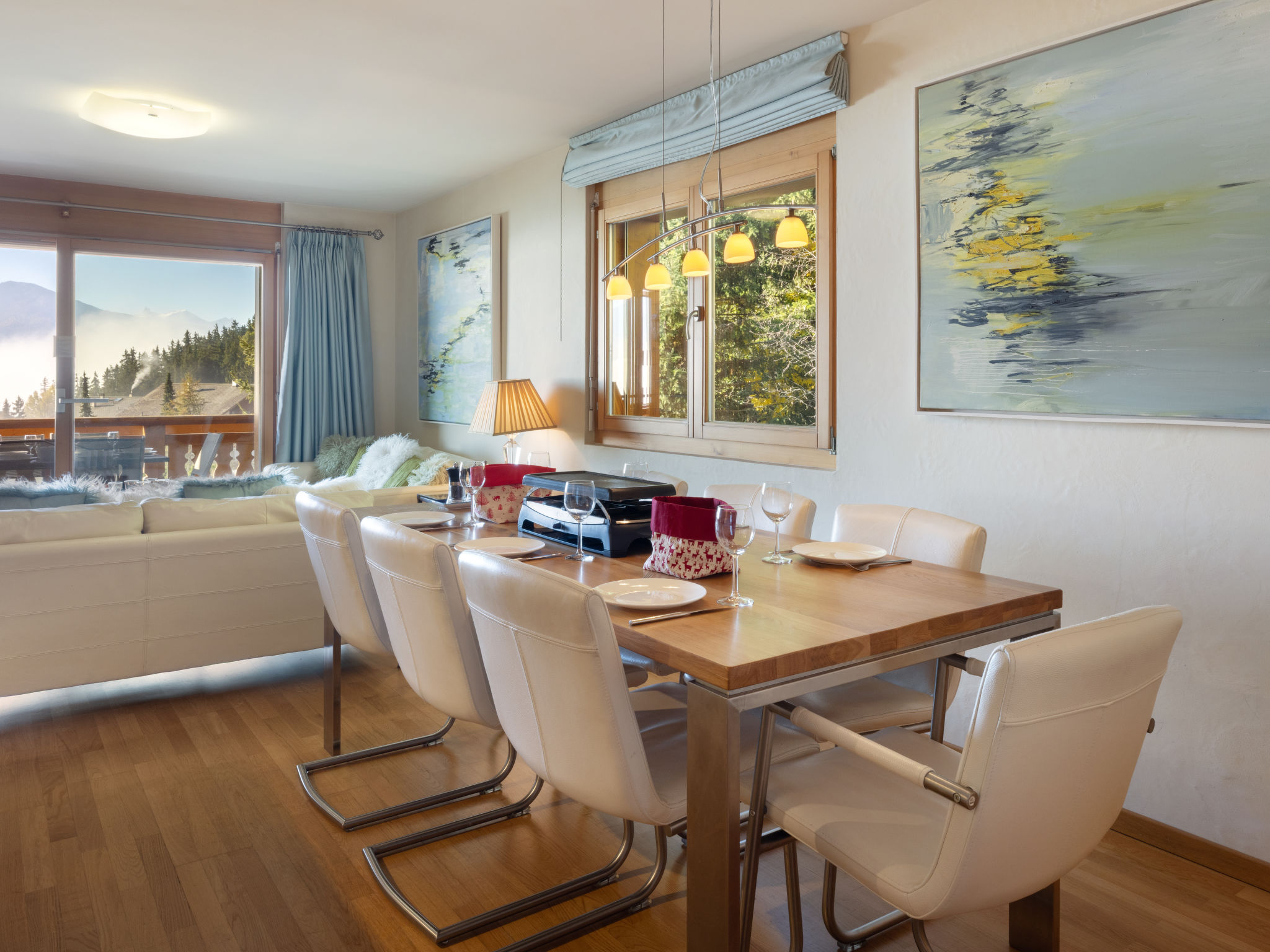 Sehr schöne, gemütliche, komfortable Residenz "Orana", umgeben von Bäumen. Oberhalb von Montana, im Ortsteil Barzettes, 2.2 km vom Zentrum von Montana, ruhige, sonnige, erhöhte Lage, 2.9 km vom See, 500 m vom Skigebiet, Richtung Süden. In der Anlage: Sauna, Fahrstuhl, Skiraum, Zentralheizung, Waschmaschine, Wäschetrockner (zur Mitbenutzung, extra). Gemeinschaftsgarage. Einkaufsgeschäft 2.1 km, Supermarkt 2.2 km, Restaurant 2.1 km, Bäckerei 800 m, Bushaltestelle "Barzettes" 50 m, Bahnstation "Funiculaire Montana Gare" 1.8 km, Badesee "Moubra" 3.1 km, See Grenon 2.9 km. Golfplatz (18 Loch) 4.2 km, Skisportanlagen, Skipisten 500 m, Skibushaltestelle 50 m, Eisfeld 2.5 km. Bekannte Seen in der Umgebung sind gut erreichbar: Lac de la Moubra 3.1 km, Etang Long 4 km. Bitte beachten: Gratis Skibus.