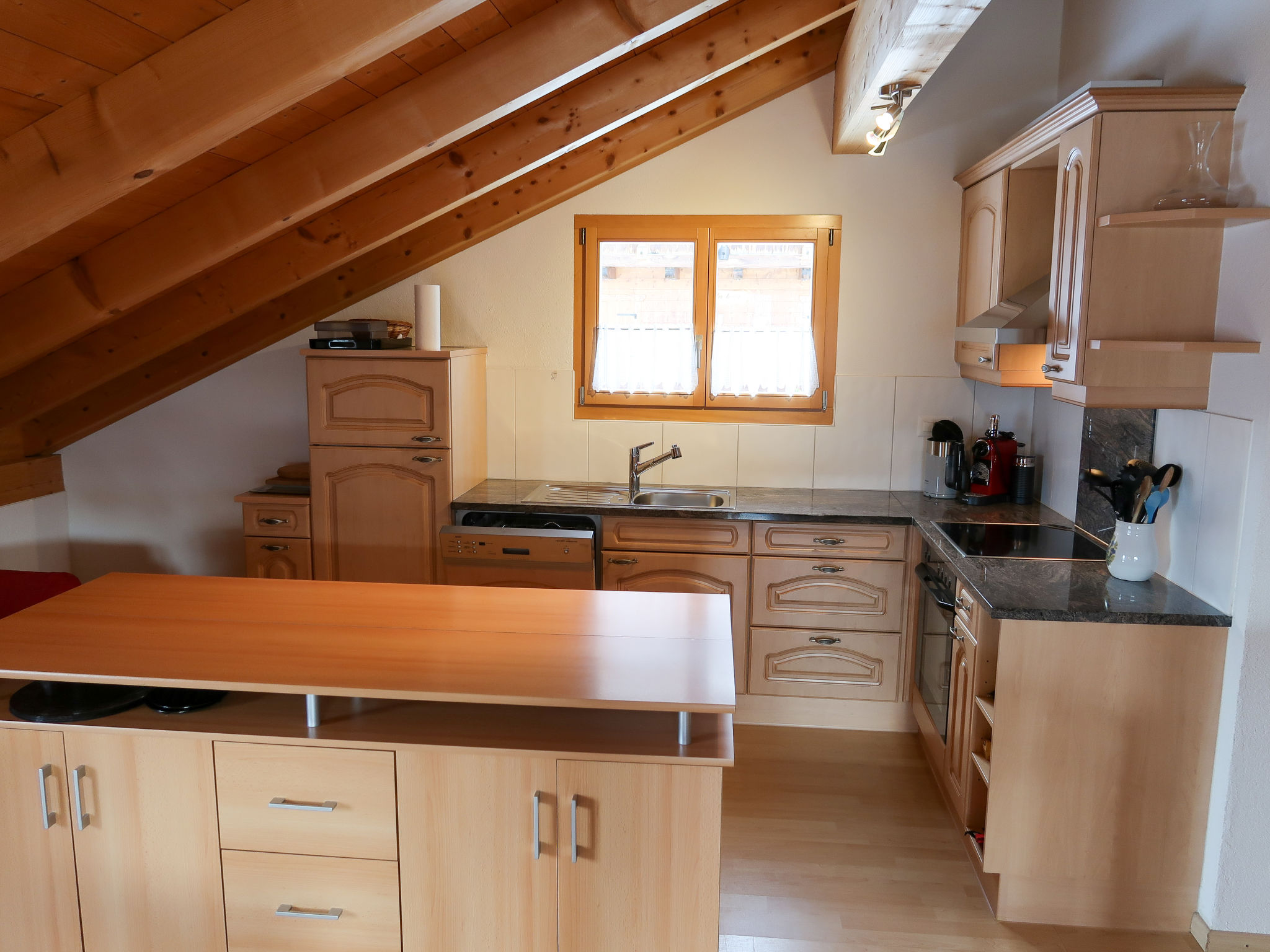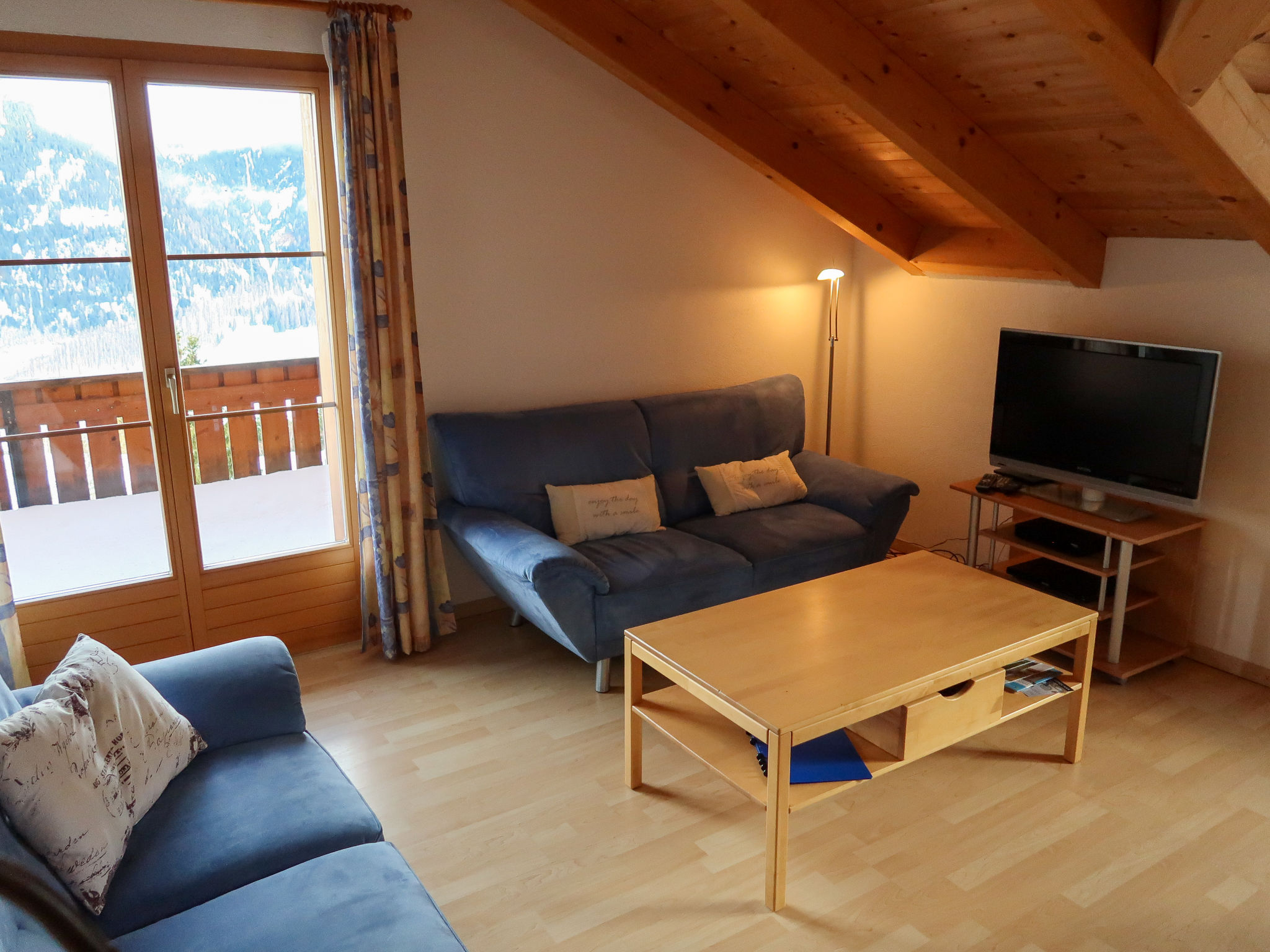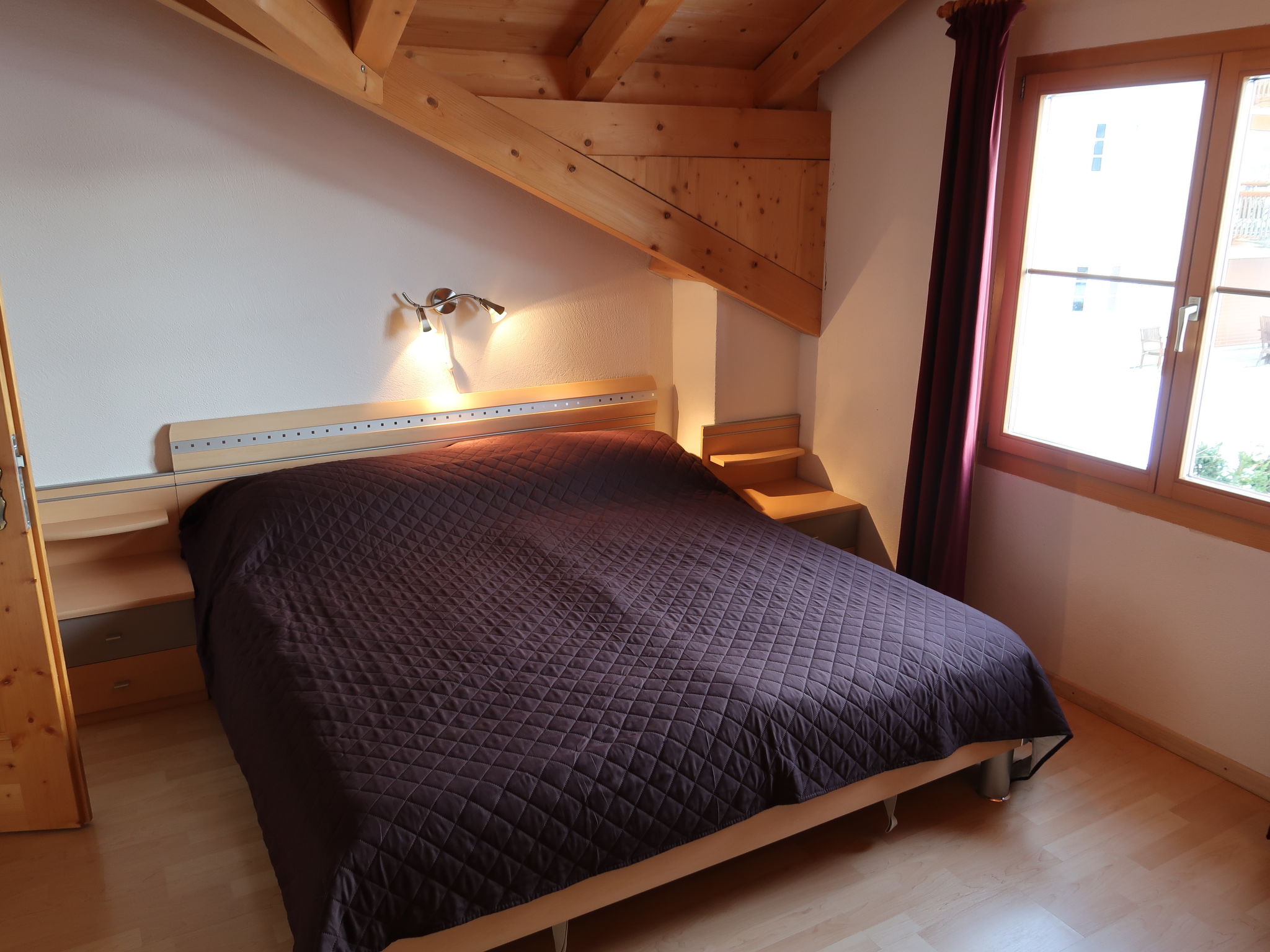 "Tga Stgirat Dachgeschoss", 3-Zimmer-Wohnung 82 m2 im 2. Stock. Komfortabel und geschmackvoll eingerichtet: Wohn-/Esszimmer mit 1 Diwanbett und Sat-TV (Flachbildschirm), DVD. Ausgang zum Balkon. 1 Zimmer mit 1 Bett und 1 Doppelbett. 1 Doppelzimmer. Offene Küche (Backofen, Geschirrspüler, 4 Glaskeramikplatten, Toaster, Wasserkocher, Mikrowelle, elektrische Kaffeemaschine, Racletteofen, Fondue Set (Käse)). Dusche/WC, sep. WC. Balkon 10 m2. Balkonmöbel. Schöne Sicht auf die Berge, das Tal und die Landschaft. Zur Verfügung: Haartrockner. Internet (WLAN, gratis). Parkplatz (1 Auto), Garage (extra). Bitte beachten: Nichtraucher-Unterkunft. Maximal 1 Haustier/Hund erlaubt.