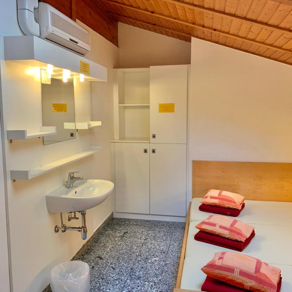 Sie können zwischen Zimmern mit einem eigenen Bad und Kabel-TV, Zimmern mit einem Gemeinschaftsbad oder einem Schlafsaal wählen.