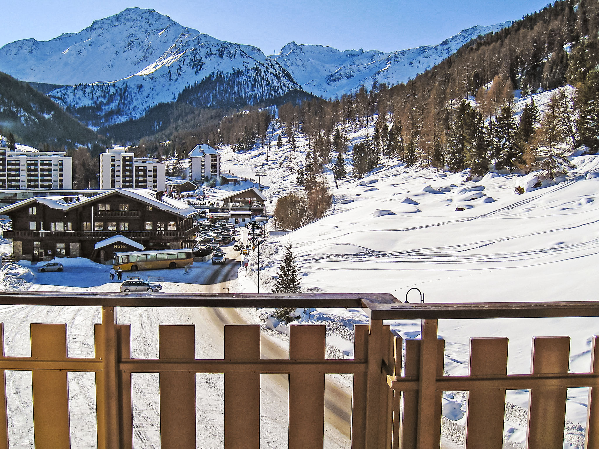 Residenz "Les Dents-Rousses". 200 m vom Skigebiet. Im Hause: Restaurant, Fahrstuhl, Skiraum, Zentralheizung, Waschmaschine (extra), Wäschetrockner (zur Mitbenutzung, extra). Zufahrt bis zum Haus. Parkplatz (beschränkte Anzahl) beim Haus, öffentliche Parkplätze 100 m extra. Supermarkt 300 m, Bushaltestelle "Haute-Nendaz, station/poste" 7.7 km, Bahnstation "Sion" 20.5 km. Golfplatz (18 Loch) 25 km, Tennis 7 km, Skisportanlagen 200 m, Skibushaltestelle 100 m, Skischule, Kinderskischule 300 m, Ski-Kindergarten 7 km, Schlittelbahn 500 m, Eisfeld 7 km, Kinderspielplatz 300 m. Bekannte Skigebiete sind gut erreichbar: 4 Vallées 100 m. Wandergebiete: Barrage de Cleuson 5 km, Bisse de Chervé 5 km, Bisse de Saxon 200 m. Bitte beachten: Weitere Unterkünfte sind buchbar.