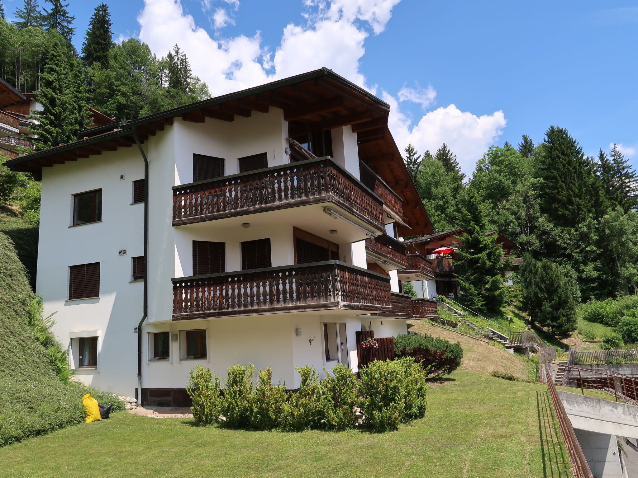 Gemütliches Mehrfamilienhaus "Sur Vitg", 1'020 m.ü.M., auf 4 Stockwerken. 500 m vom Zentrum von Laax, am Ortsrand, 6 km vom Zentrum von Ilanz, ruhige, sonnige, erhöhte Lage am Hang, 500 m vom See, 2 km vom Skigebiet. Im Hause: Fahrstuhl, Skiraum, Zentralheizung, Waschmaschine, Wäschetrockner (zur Mitbenutzung). Zufahrt bis zum Haus. Gemeinschaftsgarage beim Haus. Lebensmittelgeschäft, Restaurant, Bäckerei 500 m, Bushaltestelle "Laax GR, Fau" 100 m, Bahnstation "Ilanz" 6 km, Hallenbad, Badesee 500 m. Golfplatz (18 Loch) 3 km, Luftseilbahn 2 km, Skilift 2 km, Sessellift 2 km, Skisportanlagen 2 km, Skipisten 2 km, Skibushaltestelle 150 m, Skischule 2 km, Schlittelbahn 2 km, Langlaufloipe 2 km, Eisfeld, Kinderspielplatz 500 m. Nahe gelegene Sehenswürdigkeiten: Rheinschlucht 3 km. Bekannte Skigebiete sind gut erreichbar: Weisse Arena Flims/laax 2 km. Bekannte Seen in der Umgebung sind gut erreichbar: Laaxersee 500 m, Caumasee 5 km. das Haus befindet sich an einer Nebenstrasse Richtung Falera (Sackgasse).