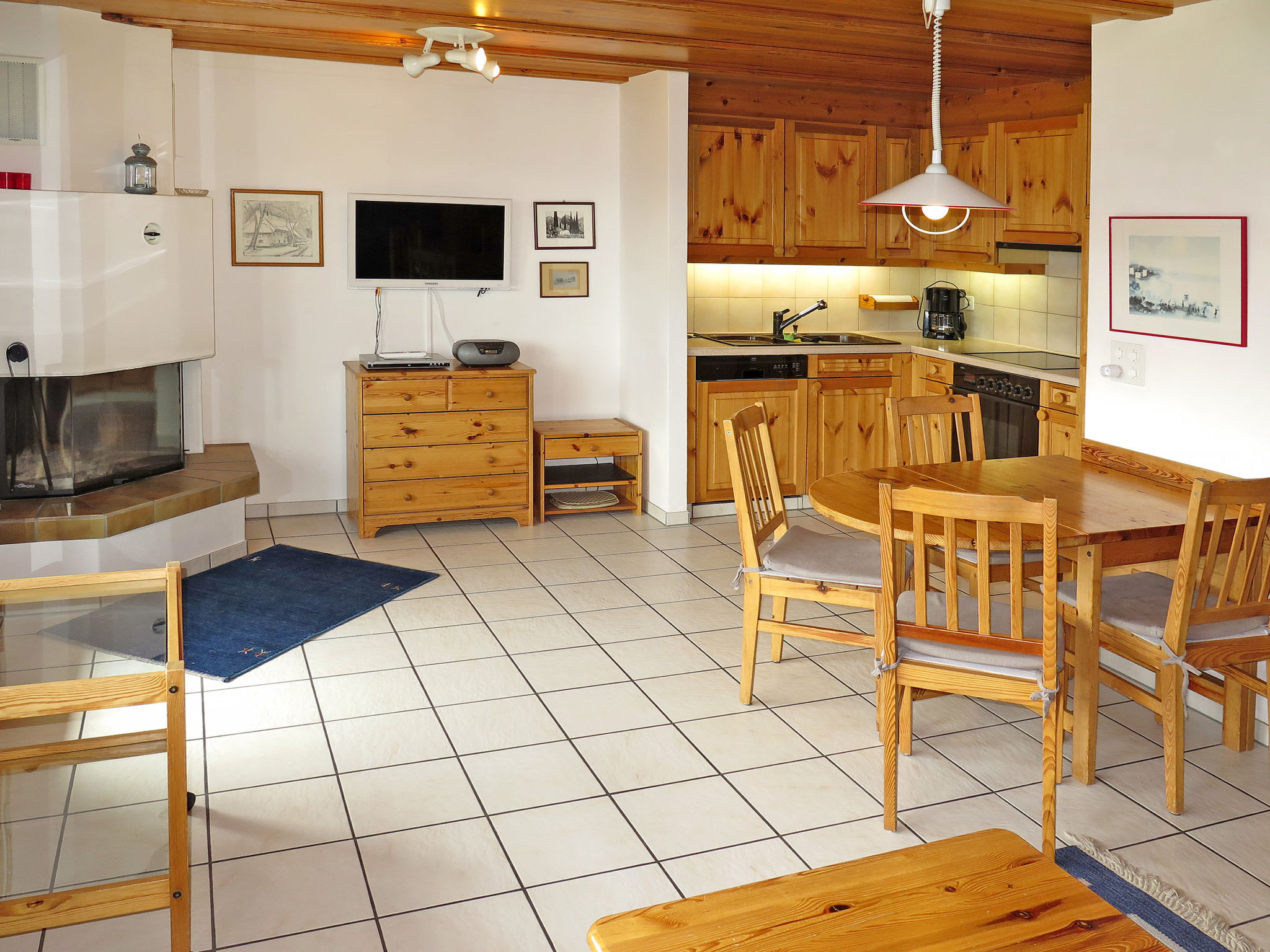 "BergSicht", 2-Zimmer-Wohnung 55 m2 im 2. Stock, Südlage. Objekt geeignet für 2 Erwachsene + 2 Kinder. Hell, gemütlich und mit viel Holz eingerichtet: Wohn-/Esszimmer mit 1 Doppeldiwanbett (150 cm), offenem Kamin und Kabel-TV (Flachbildschirm), Radio. Ausgang zum Balkon. 1 Doppelzimmer. Offene Küche (Backofen, Geschirrspüler, 4 Glaskeramikplatten, Toaster, Wasserkocher, elektrische Kaffeemaschine, Racletteofen, Fondue Set (Käse)). Dusche/WC. Fussbodenheizung. Balkon, Südlage. Balkonmöbel. Panoramasicht auf die Berge, das Tal, die Landschaft und die Ortschaft. Zur Verfügung: Internet (Wireless LAN, gratis). Garage (1 Auto) beim Haus. Bitte beachten: Nichtraucher-Unterkunft.