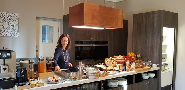 Der Tag beginnt mit einem guten "Made in Italy" Espresso im Zimmer und setzt sich dann mit einem reichhaltigen Frühstücksbuffet fort, offeriert von uns. Liebevoll in der Show Küche von Nadia zubereitet, um Ihnen Geschmack und Qualität zu servieren.