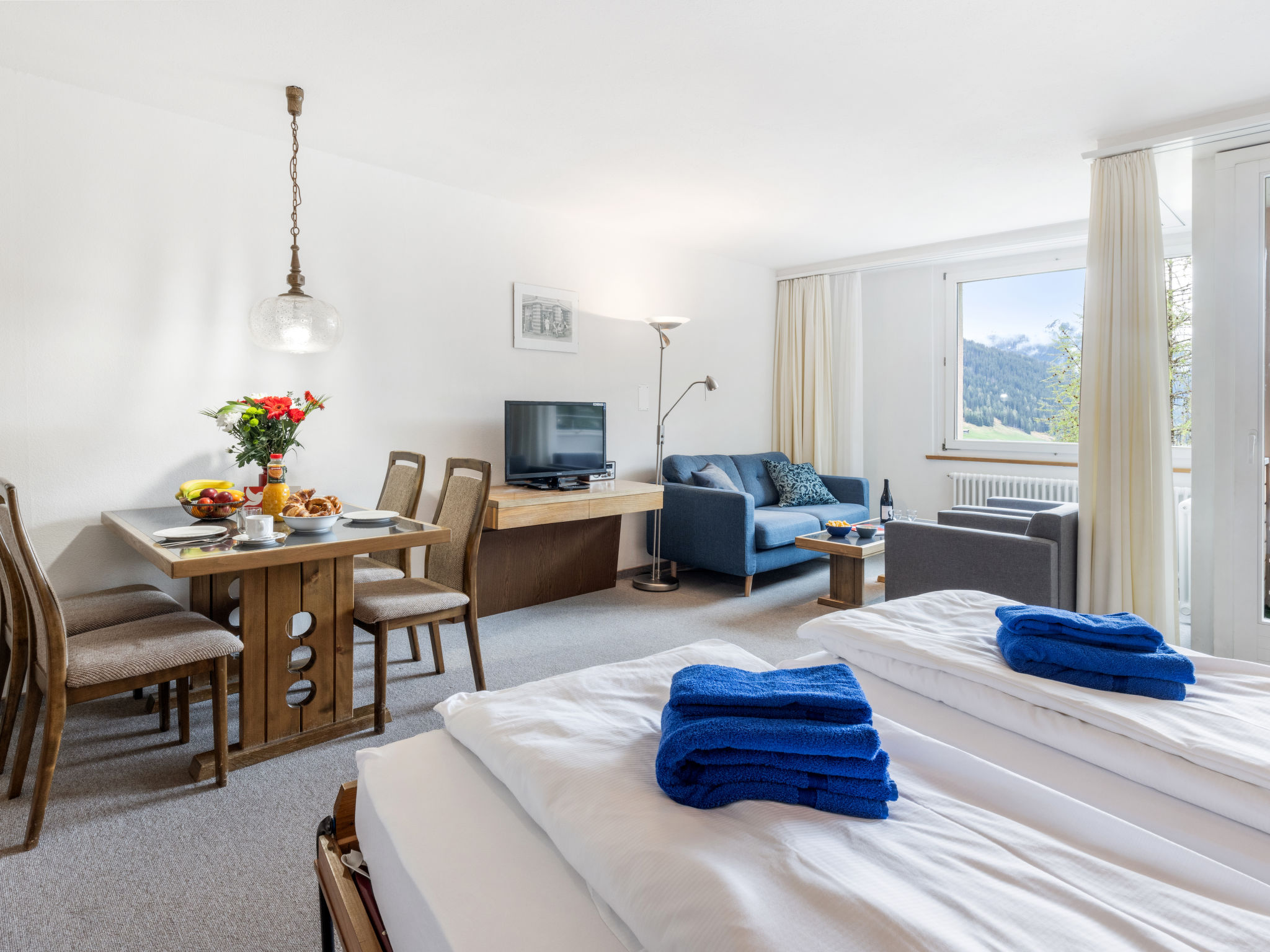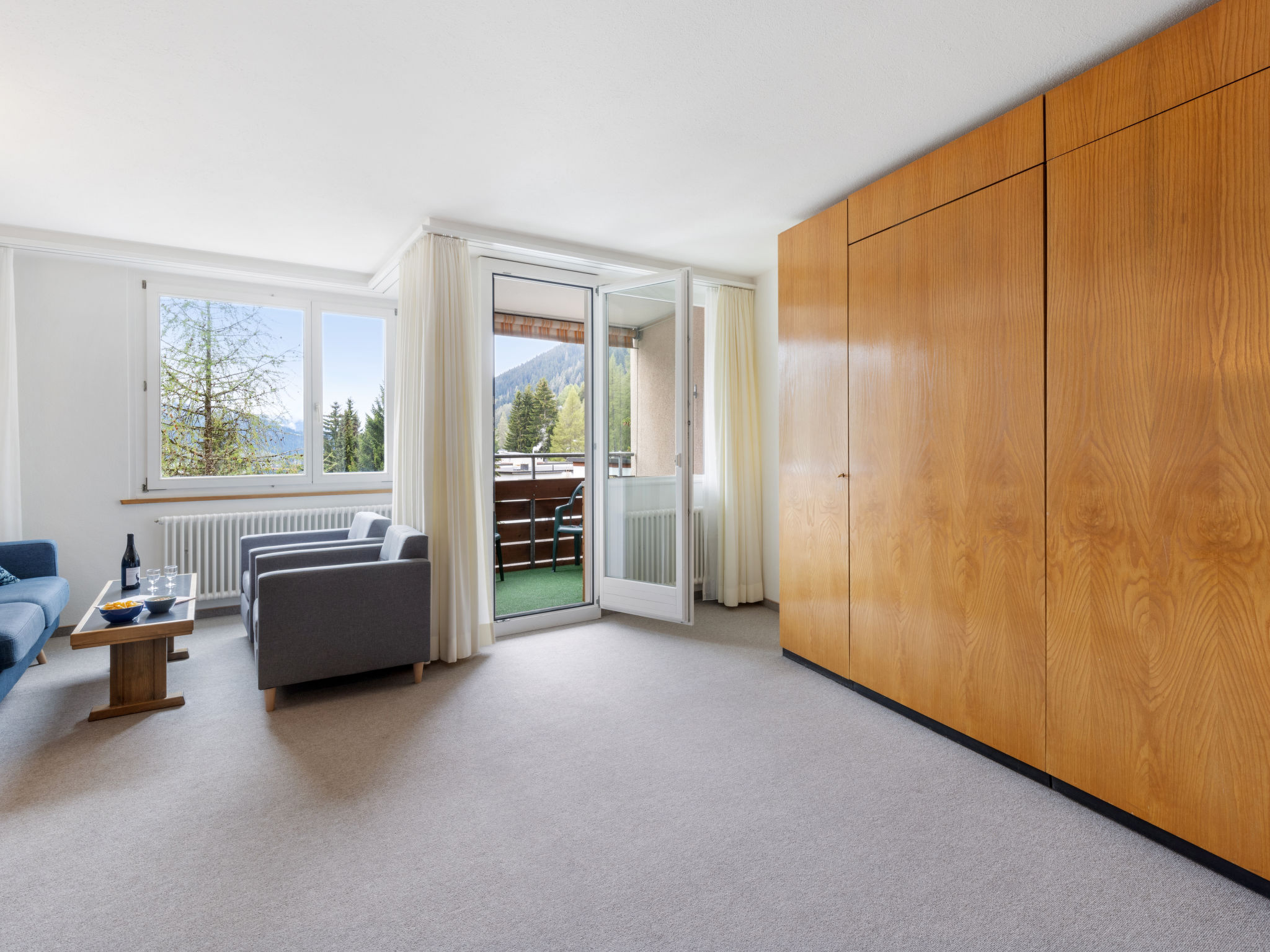 "Parkareal Apt 703", 1-Zimmer-Wohnung 53 m2 im 7. Stock. Teilweise renoviert im Jahre 2023, gemütlich eingerichtet: Wohn-/Esszimmer mit 2 Wandschrankbetten und Kabel-TV (Flachbildschirm), Radio. Ausgang zum Balkon. Schlafnische mit 2 Betten. Kleine Küche (Backofen, Geschirrspüler, 4 Glaskeramikplatten, Wasserkocher). Dusche/WC. Balkon. Schöne Sicht auf die Berge, die Landschaft und die Ortschaft. Zur Verfügung: Internet (WLAN, gratis). Parkplatz (extra). Bitte beachten: Nichtraucher-Unterkunft. Maximal 1 Haustier/Hund erlaubt. Anstelle eines abgeschlossenen Schlafzimmers befinden sich manche Schlafplätze in einem offenen Bereich (Galerie, Nische etc.). 12516