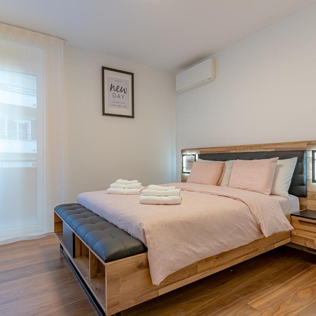 Diese Ferienwohnung mit Klimaanlage besteht aus 2 Schlafzimmern, einem Wohnzimmer, einer voll ausgestatteten Küche mit einem Kühlschrank und einer Kaffeemaschine sowie 2 Badezimmern mit einem Bidet und einer Dusche. In dieser Ferienwohnung werden Handtücher und Bettwäsche angeboten.