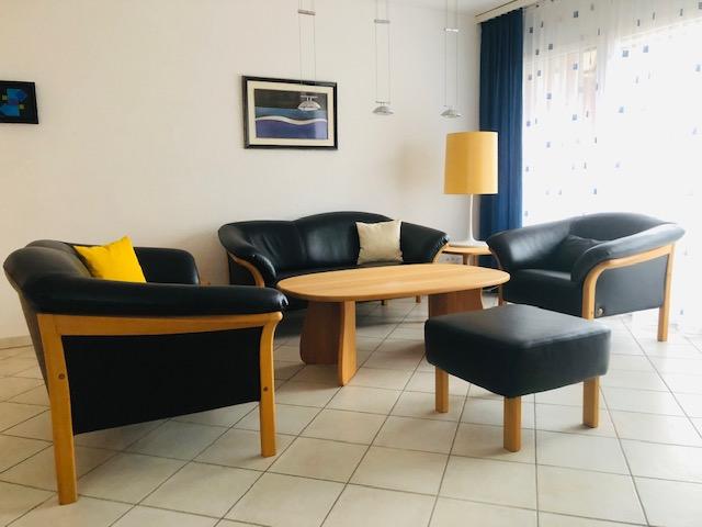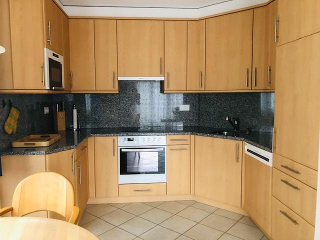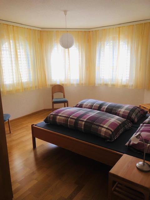 Moderne 3-Zimmerwohnung: 3. Stock, offene moderne Wohnküche mit Wohnzimmer, TV, Radio, gratis WiFi, 2 Doppelschlafimmer, Badezimmer mit Badewanne/Dusche/WC/Doppellavabo, zusätzliches separates WC, Südbalkon mit Panoramasicht, ruhige Lage, Lift, Ski- & Veloraum, Kinderspielplatz. Nähe: Torrentbahnen, Thermalbäder, Bushaltestelle, Dorfzentrum. Garage zu mieten im Haus. Nichtraucherwohnung.