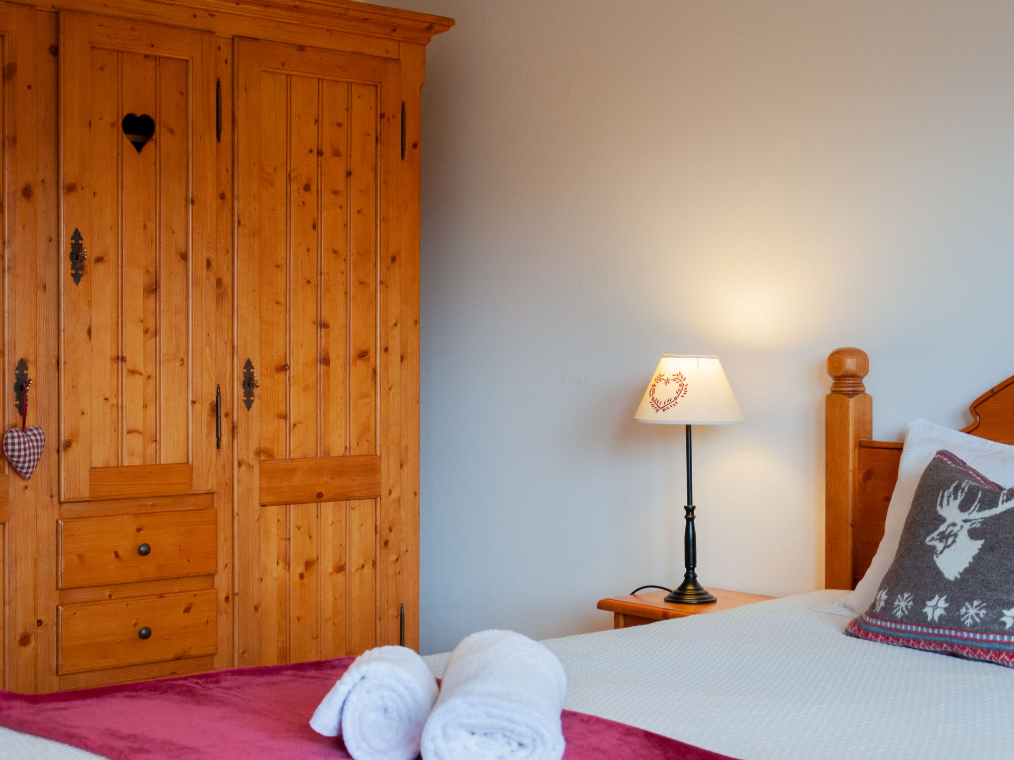 "Les Cimes Blanches B 401", 4-Zimmer-Wohnung 100 m2 im 4. Stock. Komfortabel und geschmackvoll eingerichtet: Wohn-/Esszimmer mit offenem Kamin und Kabel-TV. Ausgang zum Balkon. 1 Zimmer mit 2 Betten (90 cm, Länge 190 cm). 2 Zimmer, jedes Zimmer mit 1 franz. Bett (180 cm, Länge 200 cm). Ausgang zum Balkon. Offene Küche (Backofen, Geschirrspüler, 4 Glaskeramikplatten, Toaster, Wasserkocher, Tiefkühler, elektrische Kaffeemaschine, Kapseln für die Kaffeemaschine (Nespresso) extra, Racletteofen, Fondue Set (Käse)). Bad/WC, Dusche/WC. 3 Balkone, Nordlage und Südlage, Ostlage. Balkonmöbel. Schöne Sicht auf die Berge und die Ortschaft. Zur Verfügung: Waschmaschine, Wäschetrockner, Kinderhochstuhl, Babybett, Haartrockner. Internet (WLAN, gratis). Garage, Höhe 200 cm, Breite 230 cm. Bitte beachten: Nichtraucher-Haus.