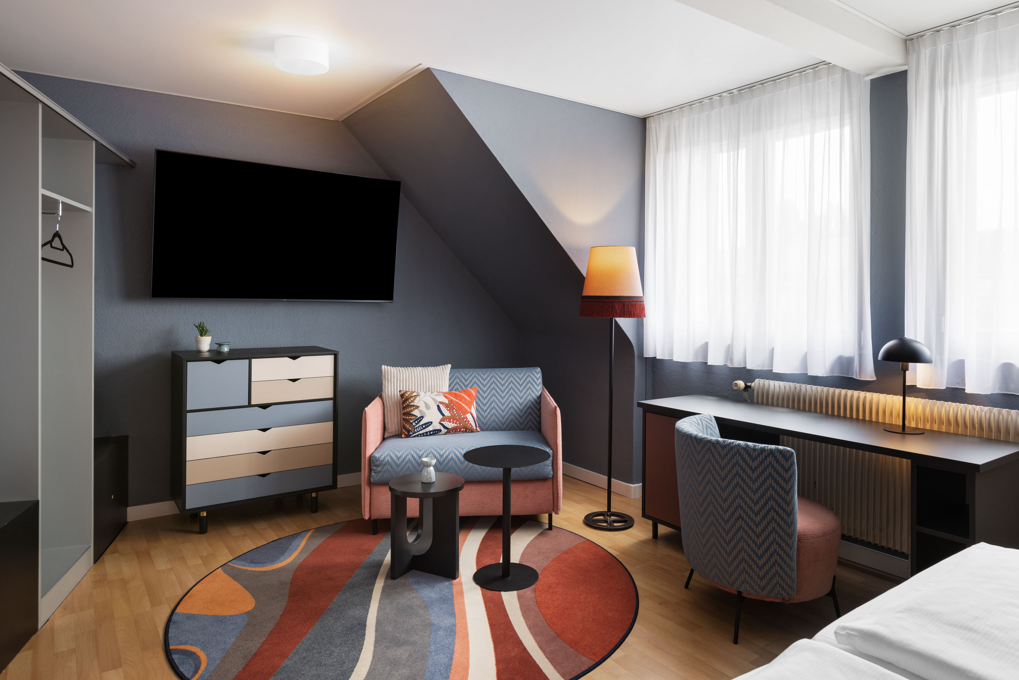 Zentral und ruhig gelegenes Garni-Hotel mit idyllischem Gartensitzplatz mitten in Bern. Das Hotel verfügt über 55 Einzel- und Doppelzimmer mit Grand Lits oder Doppelbetten, Flat-Screen TV, Radio, Telefon, Bad mit Dusche, WC & Föhn. Ein Frühstücksbistro und ein Grab n' Go Market mit Getränke- und Snackauswahl stehen zur Verfügung. Ab dem Hauptbahnhof SBB Bern in 7 Gehminuten oder mit der Tram Nummer 3 Richtung Weissenbühl, Haltestelle Hasler in wenigen Minuten erreichbar. Hoteleigene Park- und Garagenplätze stehen zur Verfügung. Die Zimmerraten verstehen sich inklusive reichhaltigem Frühstücksbuffet, kostenfreiem Internet und 2 Flaschen Wasser pro Aufenthalt. In unmittelbarer Nähe zum Hotel befinden sich Geschäfte, Cafés und Restaurants.